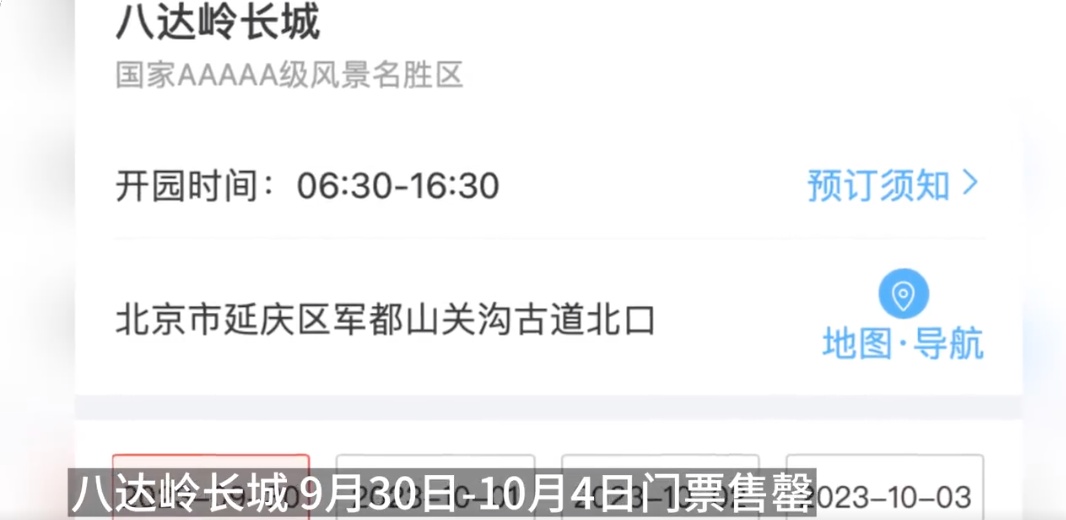 八达岭长城9月30日-10月4日门票售罄