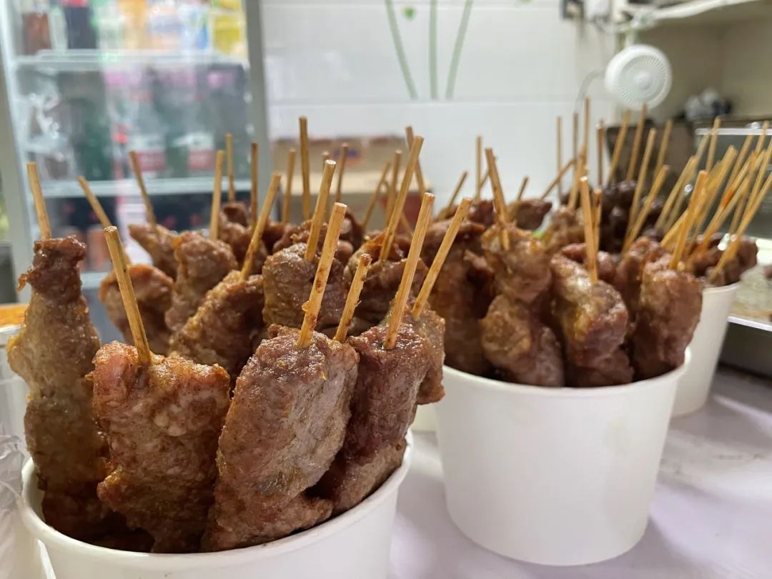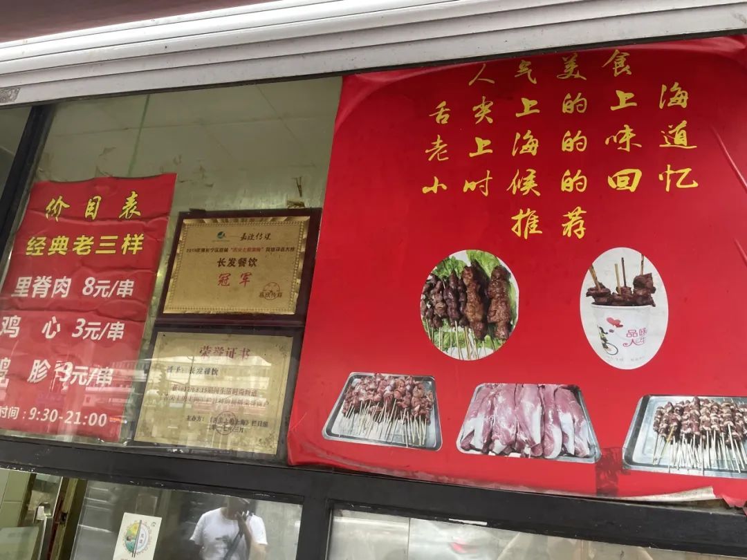 店主刘静阿姨是个亲切的老上海人,从20多年前的流动小推车,到如今的这家实体小店,勤劳的她还在这里。里脊肉大块多汁,成了长发的招牌,鸡肫鸡心鲜嫩入味,来买的人也都会带上一串。这些年来,清晨5点开始备货早已成为刘阿姨的习惯,每天卖出3000多串,在她眼里不过是寻常。