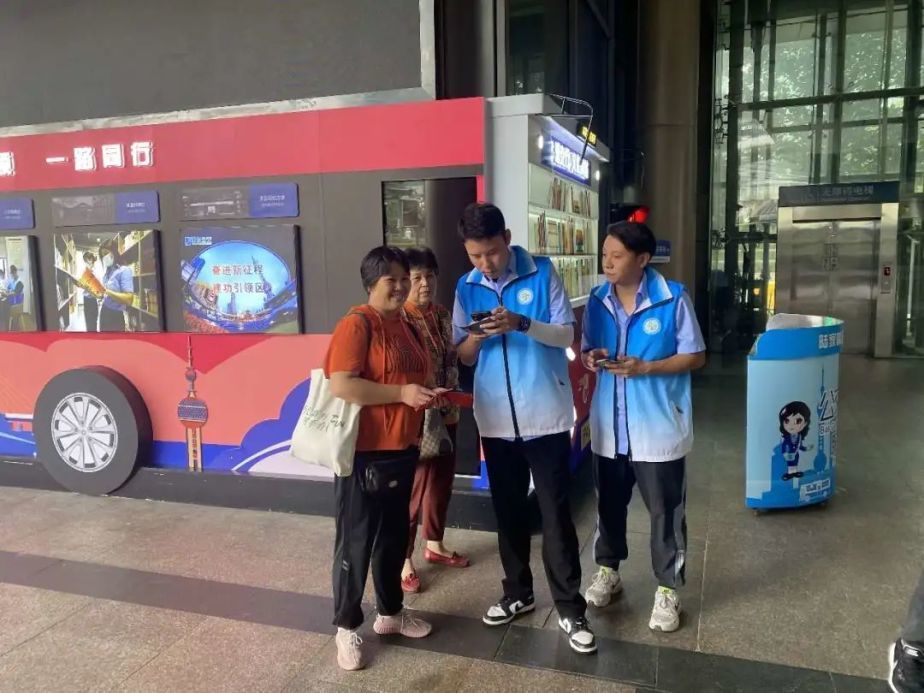 在旅游景点、重要商圈、公交枢纽站等地方,节日里公交志愿者还开展志愿服务,回答乘客咨询。