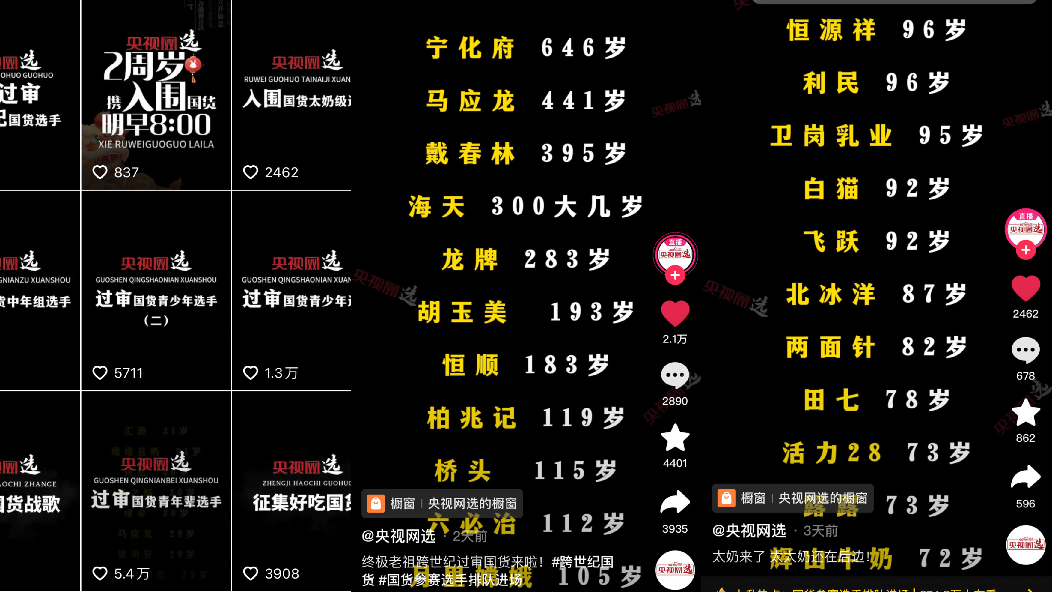 9月15日,央视网选征集好用、好吃国货 ,过审后分为青年辈、青少年、中年组、太奶奶级、跨世纪国货选手,在24日携众多国货品牌开播。