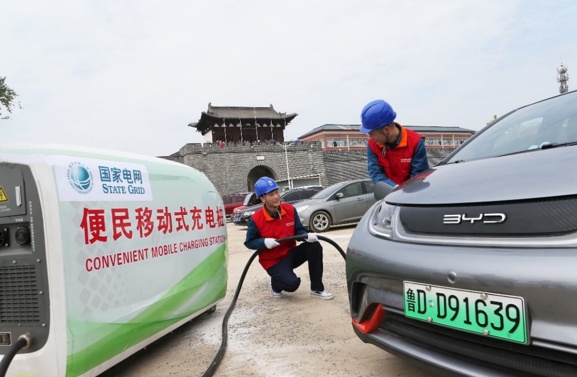 ▲国网枣庄供电公司推出移动式充电桩护航台儿庄古城绿色出行(鞠同心 摄)