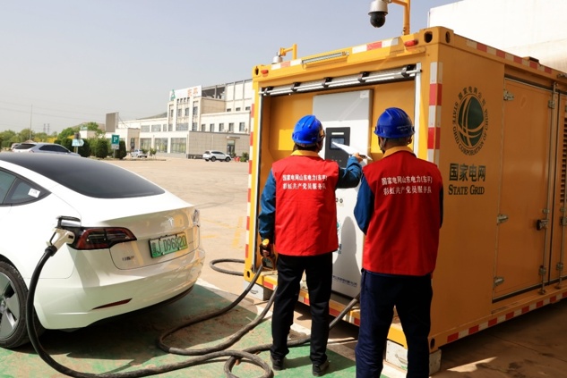 ▲国网东平县供电公司工作人员对部署在高速公路服务区的应急充电舱进行巡视检查(方军 摄)