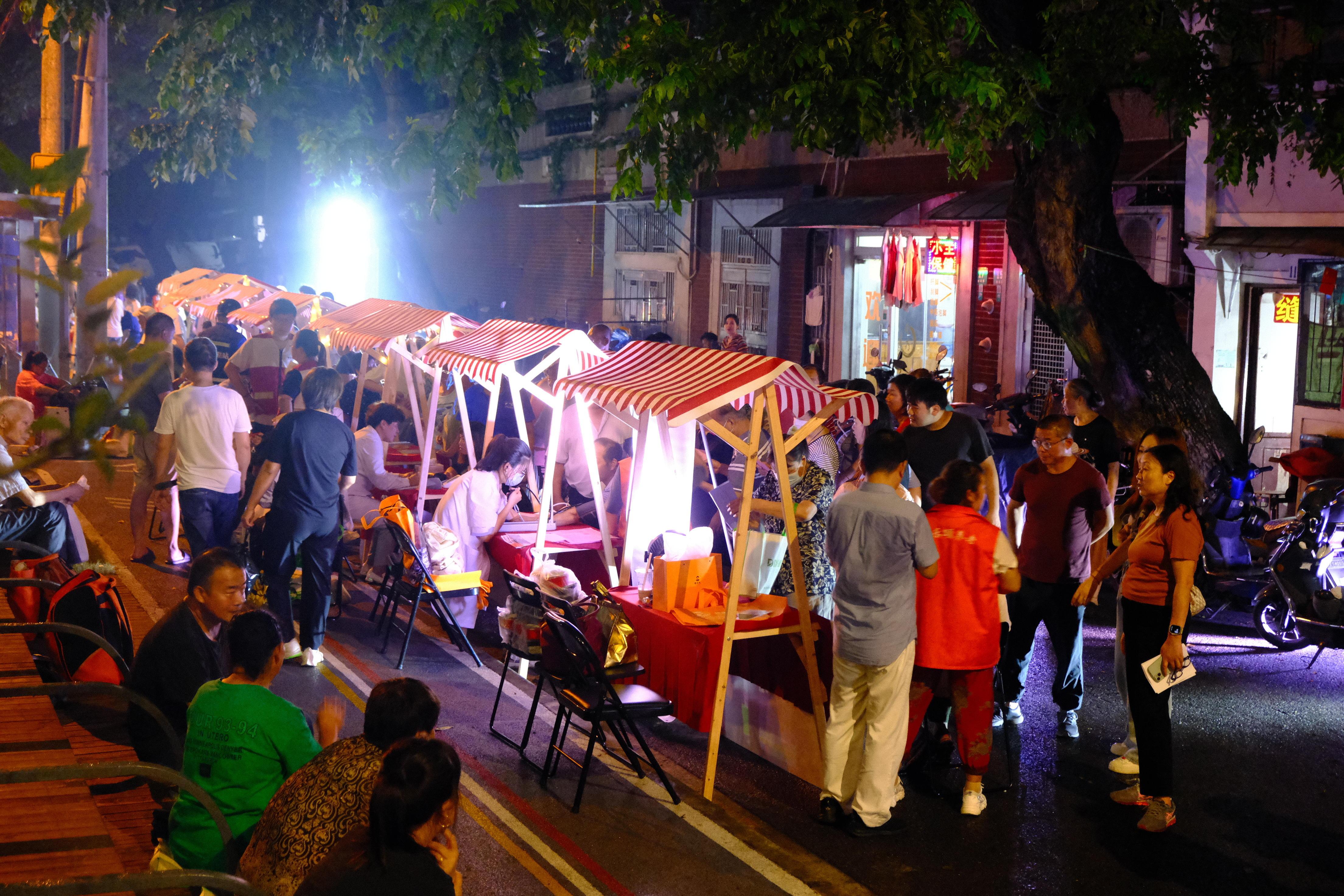 自今年3月“东风集市”开设以来,一直备受居民喜爱。小东门街道结合“美好社区 先锋行动”,在环东门广场街区增设“东风夜市”活动,打造既有公益性又有烟火气的老城厢夜间新形象。
