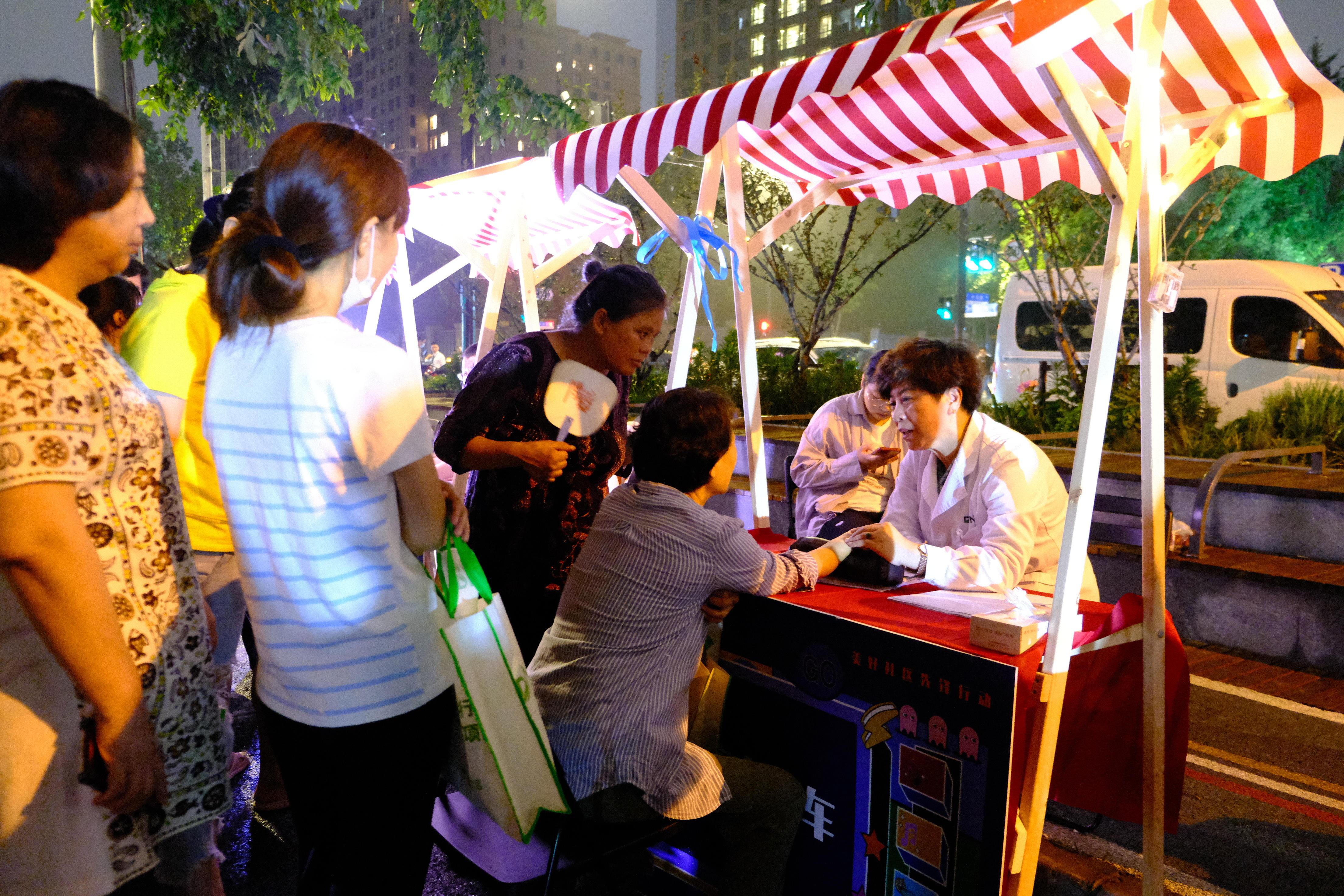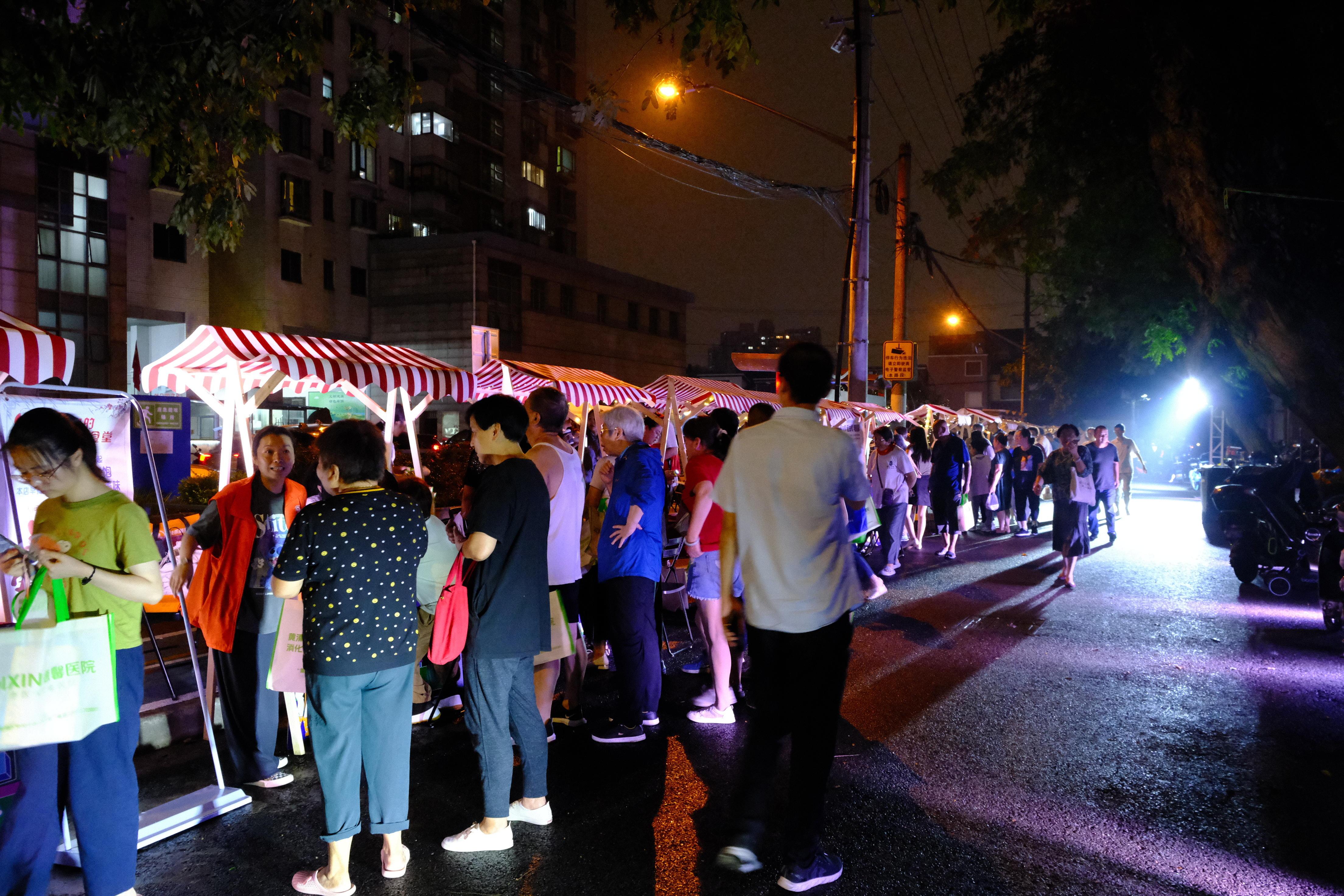 活动现场,一系列健康服务项目不仅为居民群众进行病情诊断、身体健康评估,还提供耳穴压豆、推拿等传统中医疗法,吸引了众多周边居民和企业白领以及路人踊跃参与。“我的工作以案头工作为主,长时间坐着打电脑,导致肩膀和颈椎都有不适,偶尔还会头疼,今天医生帮我做了按摩,还给了日常保健的建议,‘东风夜市’的时间对我这样的工作人群非常友好,也非常方便和贴心。”青年小黄就居住在金坛路居民区,之前的东风集市总是因为加班等原因错过,得知新开“东风夜市”之后,掐着点赶来了。