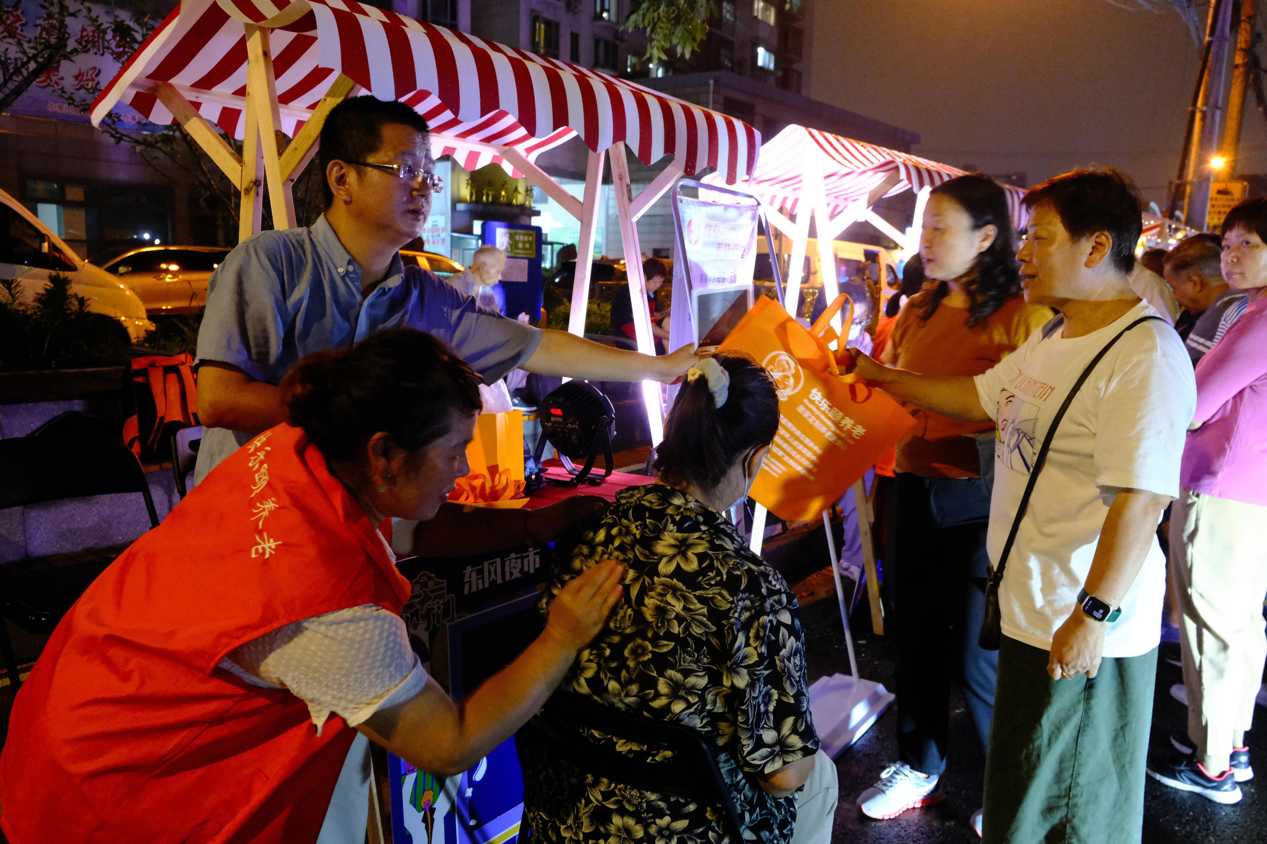 “‘东风夜市’正是街道把开展主题教育同打造‘美好社区 先锋行动’‘15分钟社区生活服务圈’相结合的具体实践。”据小东门街道相关负责人介绍,环东门广场街区以东门广场为中轴,南、北、西面由大片老旧小区、商品房小区、老城厢及沿街各类商铺环绕,东临外滩金融集聚带的重要区域,涵盖了社区居民、企业白领、新业态新就业群体等多元服务主体。选择东门广场举办“东风夜市”活动,正是充分考虑了环东门广场街区的区位优势和人气集聚,同时也希望让更多群众都能享受到优质、便捷的社区便民服务。