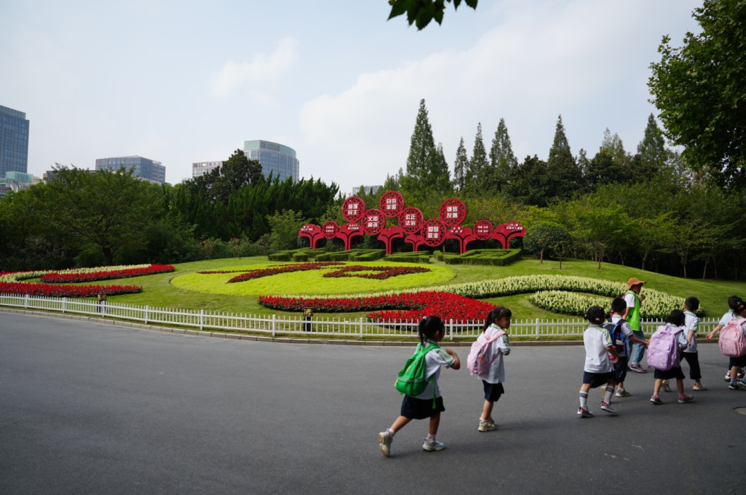 市民吴女士举着手机对着靓丽的公园景观拍照,她开心地说: “虽然还没到国庆佳节,但是我已经提前感受到了普陀区的国庆氛围,整个公园都洋溢着喜庆、热烈的节日氛围 。”
