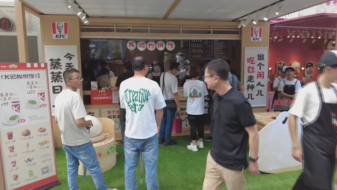 这个长假,春风松月楼与肯德基早餐联名的首家快闪店铺——K记松悦馆正式亮相豫园商城旧校场集市。