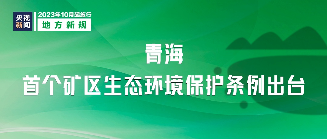 《海西蒙古族藏族自治州木里矿区生态环境保护条例》10月1日起施行,这是青海首个关于矿区的生态环境保护条例。明确木里矿区内禁止非法开采以及借保护、修复、地质勘查之名盗采煤炭、石料、泥炭、砂石、黏土等矿产资源;禁止开(围)垦、排干、填埋自然湿地、永久性截断湿地水源,改变自然水系状态。