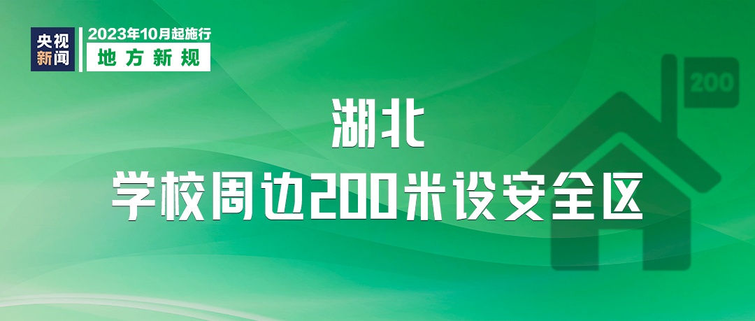 《湖北省学校周边安全区域管理办法》10月1日起施行。明确在中小学校、幼儿园周边200米范围内建立学生安全区域,并对社会公开。高压电线、长输天然气管道、输油管道严禁穿越或跨越中小学校,安全防护距离及防护措施应符合相关规定。