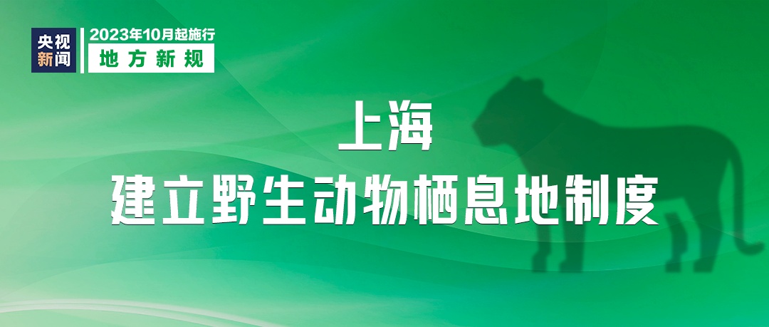 《上海市野生动物保护条例》10月1日起施行。明确禁止投喂野外环境自然生长繁殖的野生动物。明确提出加强野生动物收容救护能力建设,建立野生动物保护巡护制度,建立上海市野生动物栖息地制度。