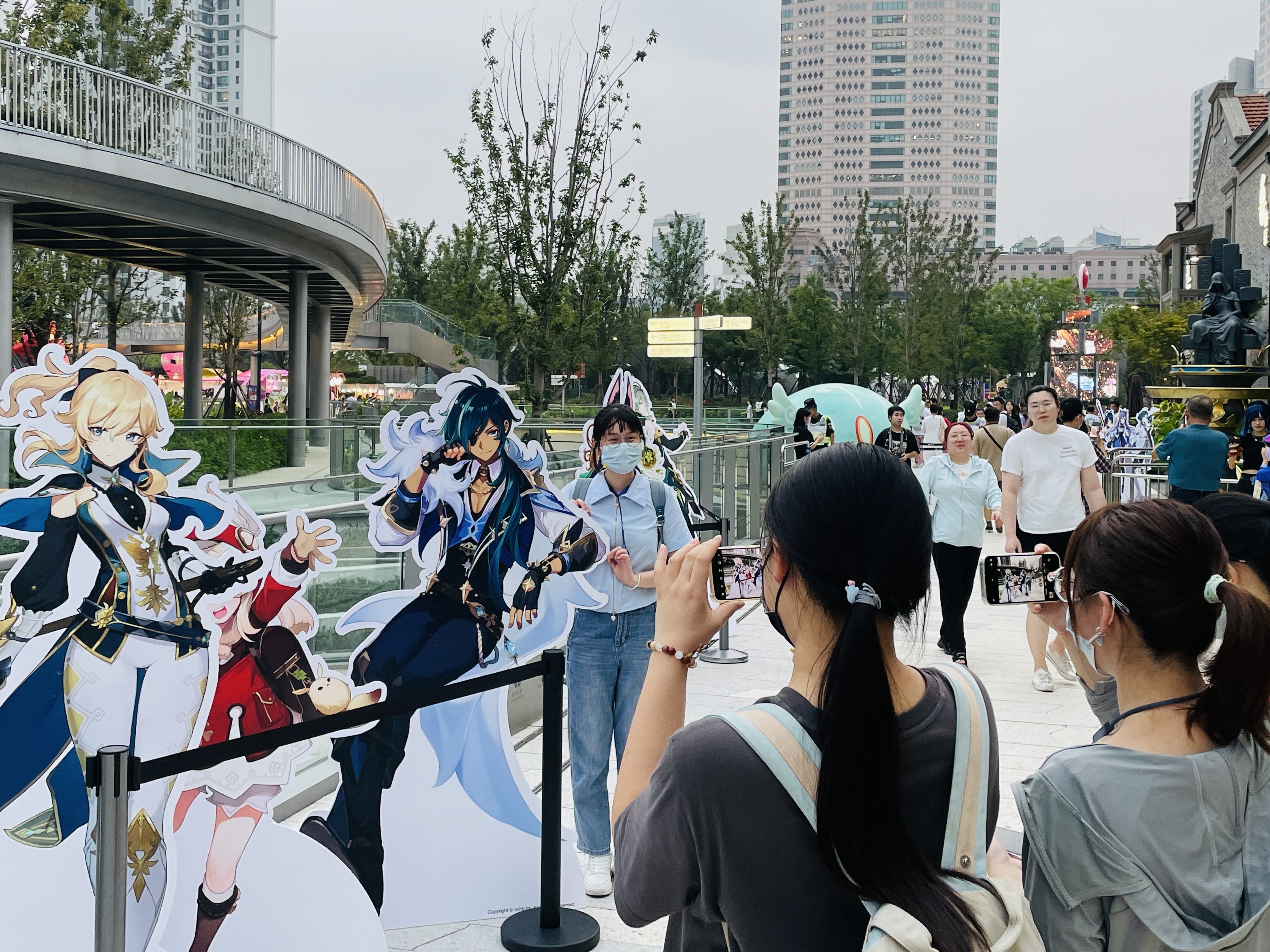 “很少能在市中心这样人流密集的区域看到自己喜欢的IP,还是挺开心的。”李女士告诉记者,原本想来看晚上的灯光秀,得知这里还有一个原神主题的置景,作为原神玩家的她,特地cos了自己最喜欢的角色,和朋友一起来愉快地“拍拍拍”。