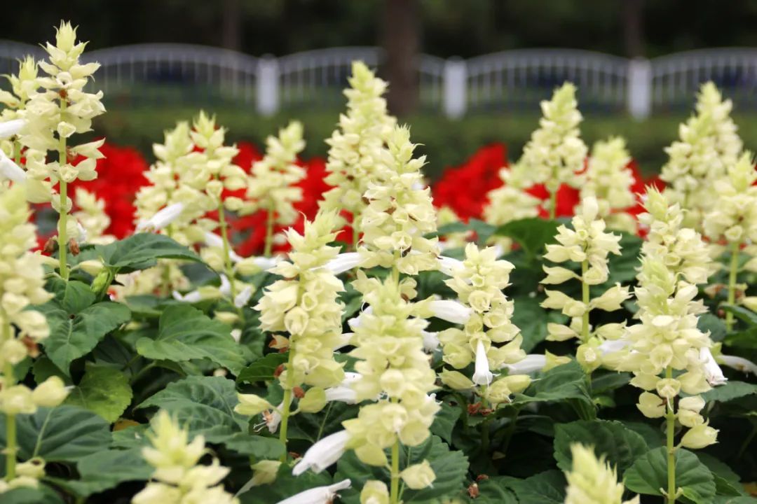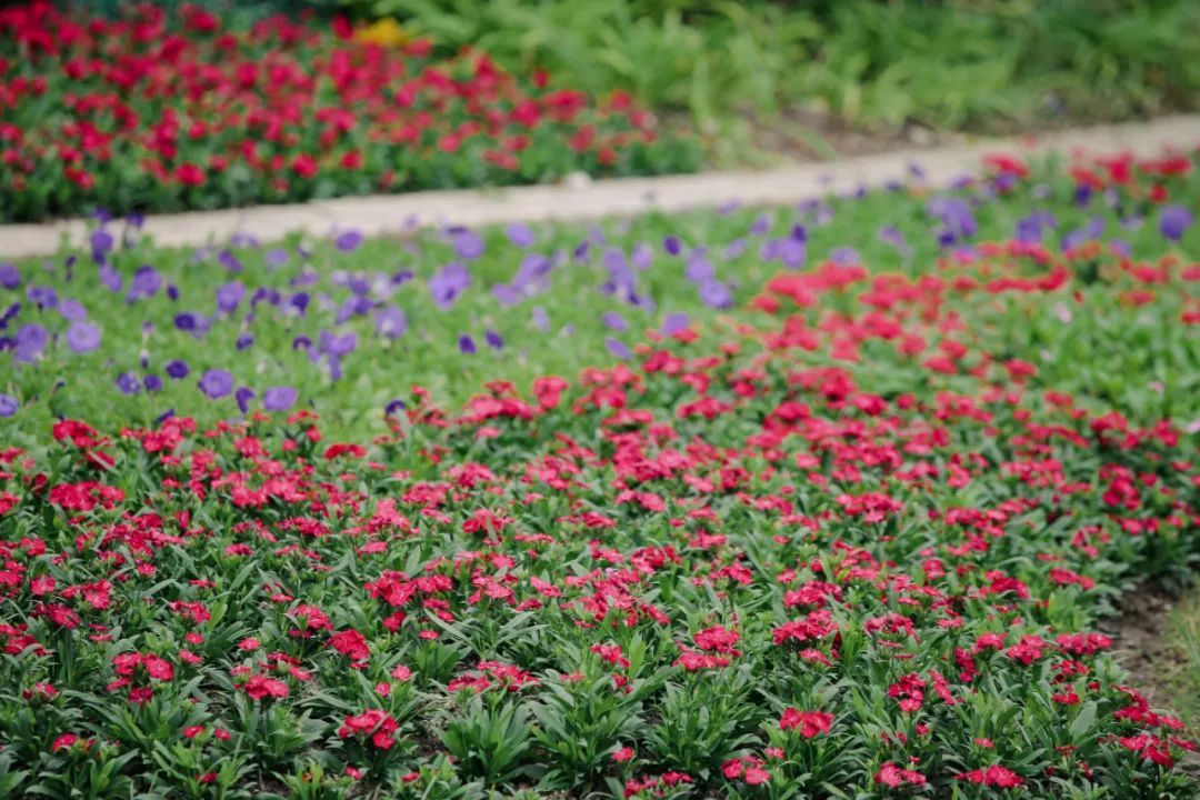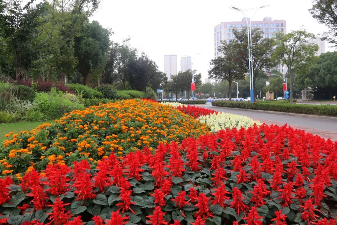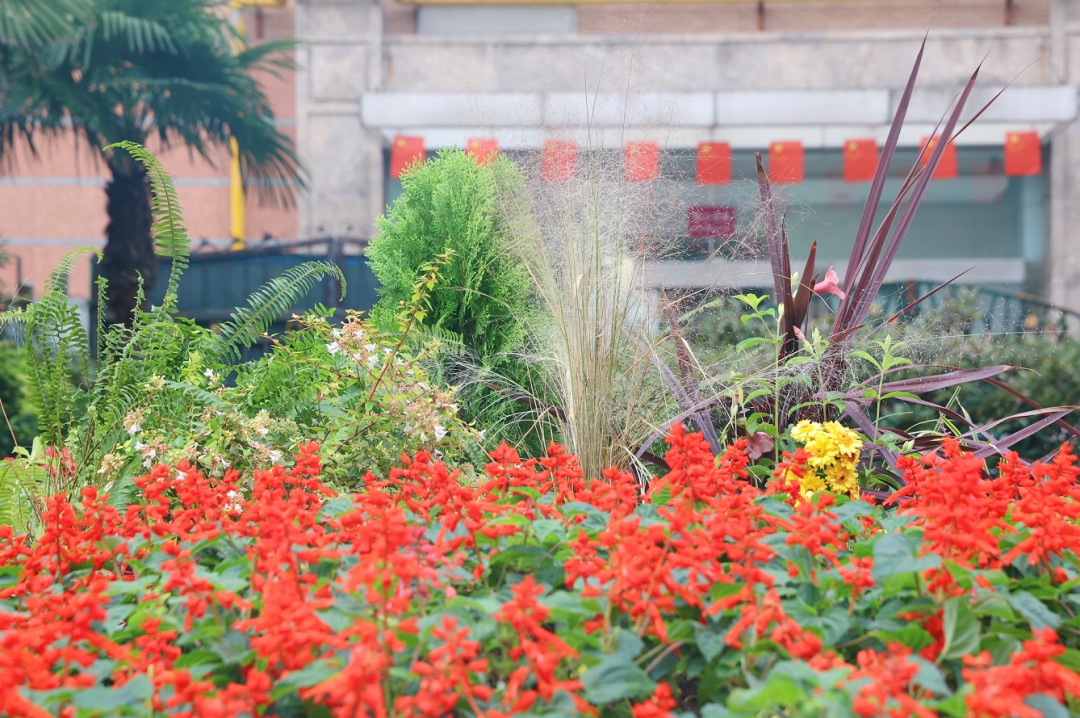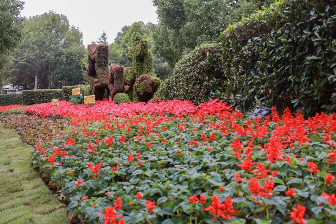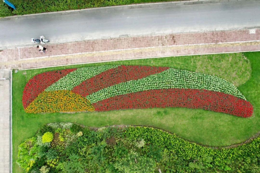 整个花境面积约60平方米,色彩以红、黄两色为主,寓意良好、颜色艳丽,喜庆的节日气氛瞬间拉满。