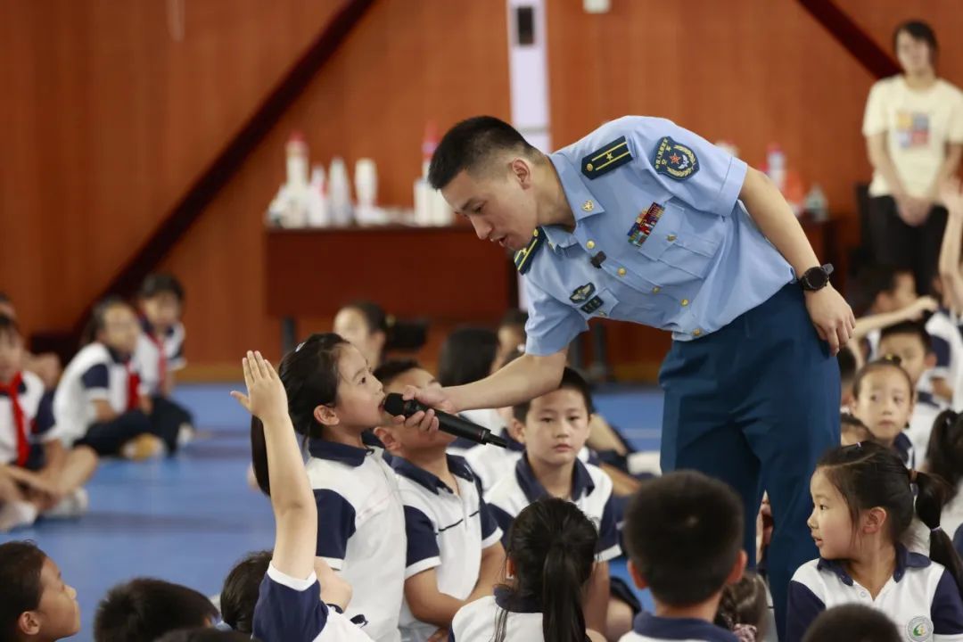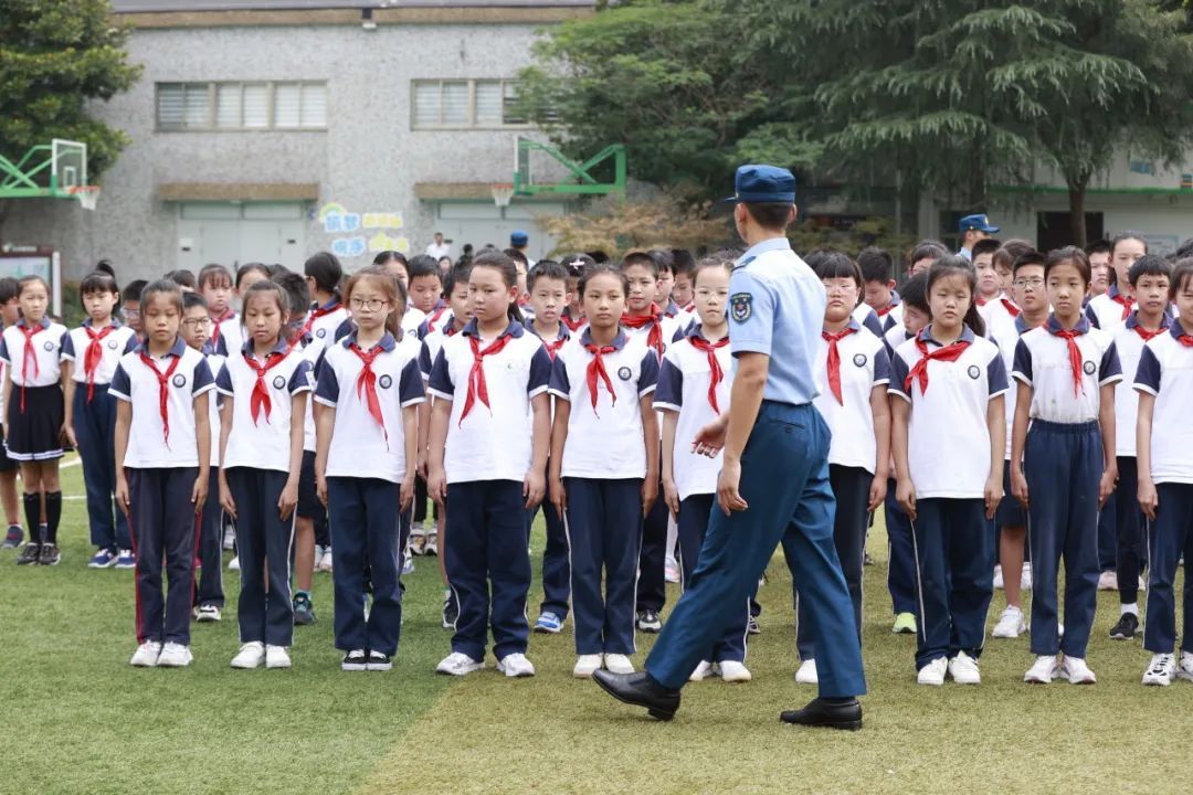 为加强国防意识,增进集体凝聚力,学校邀请解放军和徐汇区钢铁之翼退役军人开展“学做小军人”实践体验活动。同学们意志坚定,口号嘹亮,在烈日下踏出整齐的步伐,展现良好的精神面貌。