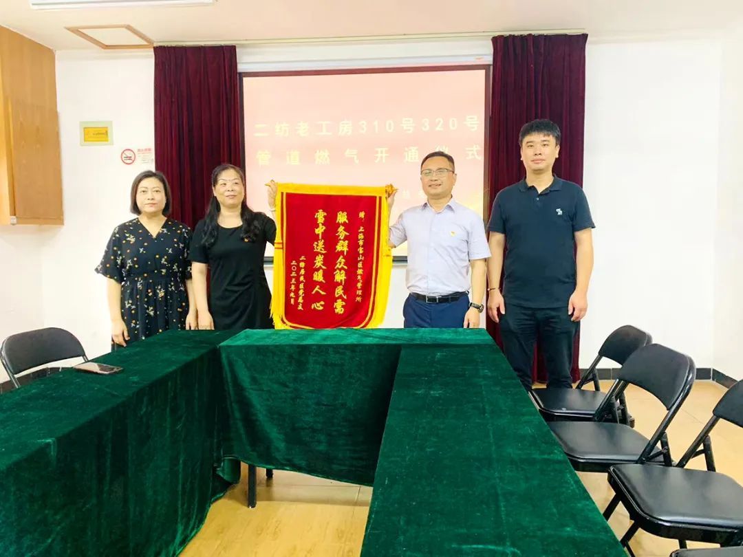 二纺居民区党总支带着社区居民的感谢,为区人大代表、区燃气所、工程单位送上锦旗,感谢他们为居民用好气交出一张满意的答卷。通气当天,在区燃气所、液化气公司、派出所的相互协作下,以点到面完成清瓶工作。