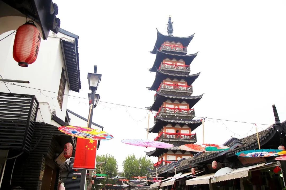 州桥南堍、练祁河旁,亲子徒步的第一站来到嘉定法华塔。“小朋友们,请大家数一数法华塔一共有几层?”“七层!”抬头看去,巍然矗立800多年的法华塔修缮后重现古韵风华,在红色绸缎的装点下焕发着光彩。