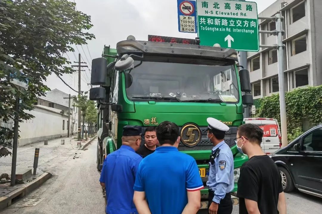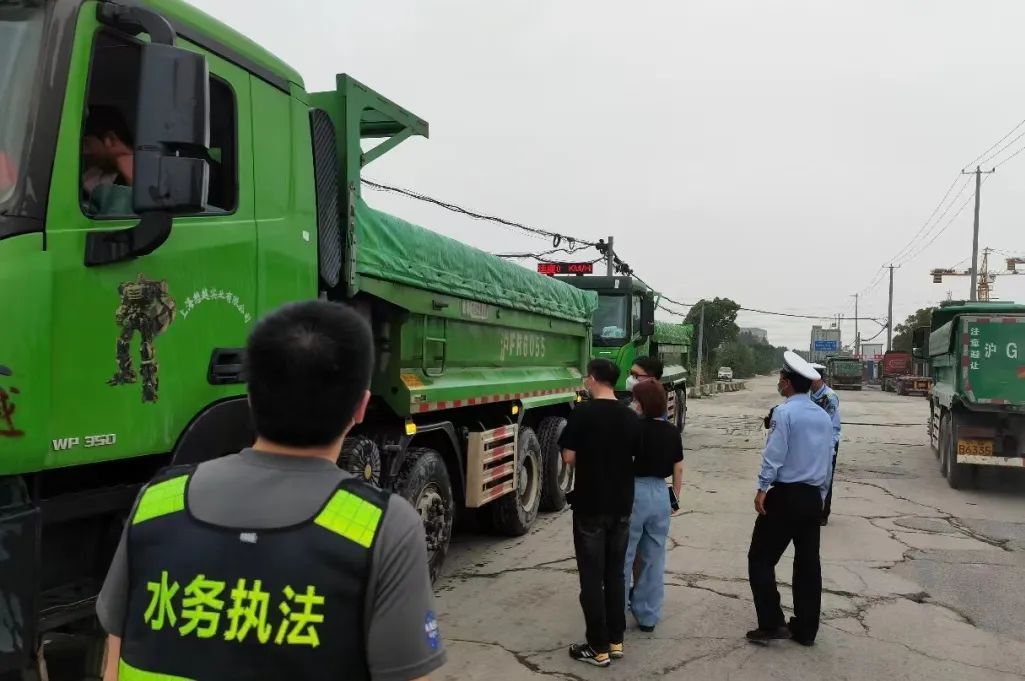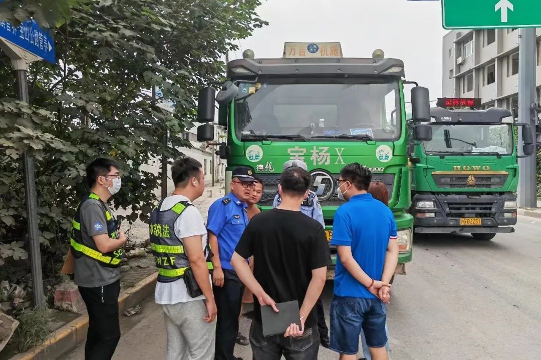 联合检查点位选定在联谊路泰联路路口,该点位位于宝山南片地区,紧邻南北高架主干道,是出入宝山的重要路段,同时又毗邻渣土中转码头,车流量大。检查组通过现场询问和核验证照等方式,重点对工程渣土车车容车貌情况开展检查,排查内容包括未密闭、车容不洁、跑冒滴漏、道路污染等问题。