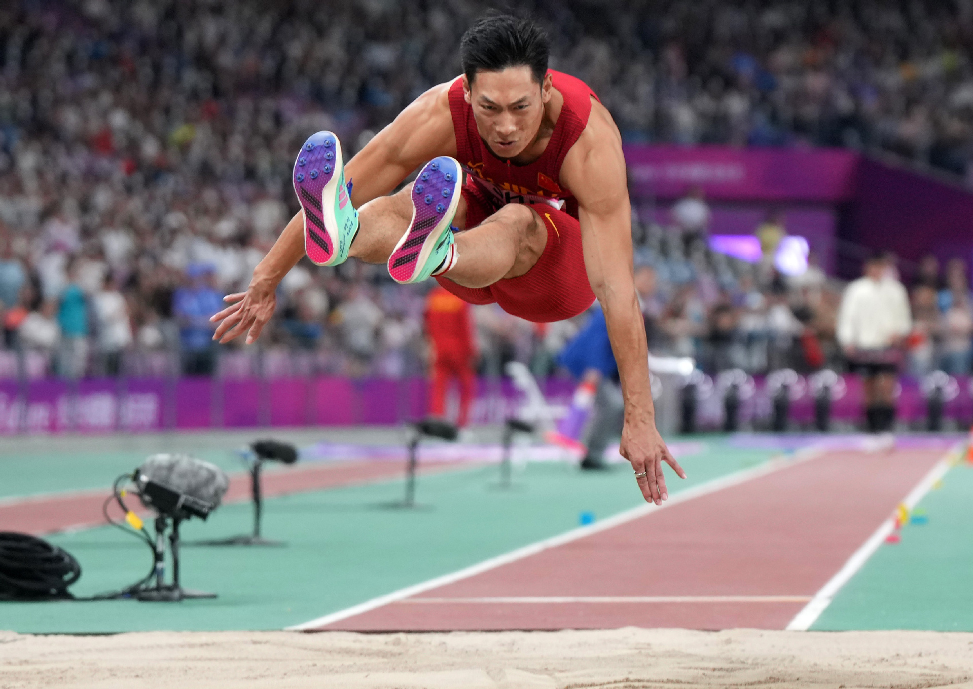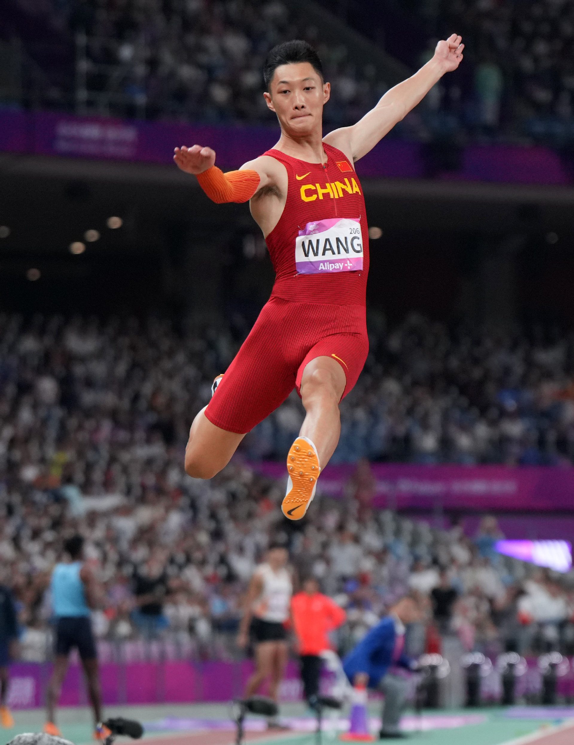 10月1日晚,“大莲花”内有数万名观众前来观看当晚的田径比赛,气氛热闹非常。王嘉男聚精会神,助跑、起跳、腾空、落地动作干脆利落,第1跳就拿下了全场最高的8.22米,在随后的几次有效试跳中,他都跳出8米以上,大幅领先于其他对手。仅在第4轮,由印度选手斯里尚卡尔跳出的8.19米,对王嘉男造成了一定压力。最终王嘉男凭借第一跳的8.22米成功卫冕。“8.22米这个成绩可能比我的赛事目标还是差了一点,本来我想打破自己保持的赛会纪录,但是还差了2厘米。”赛后,谈到今年两个大赛:布达佩斯世锦赛和亚运会时,王嘉男表示,“接下来我也要在比赛中找问题,布达佩斯世锦赛成绩不是很理想,也是让我吸取教训。我希望把布达佩斯世锦赛和亚运会两场的经验应用到巴黎奥运会上,自己发挥出一个相对不错的成绩。”
