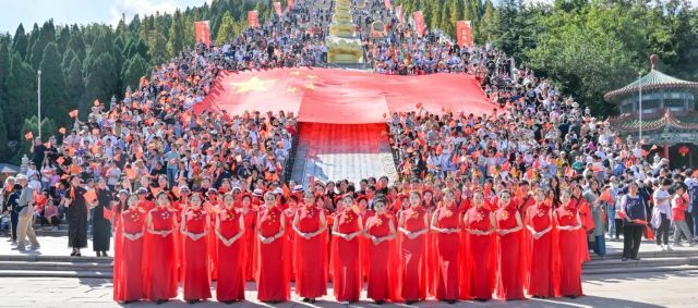 当天上午,景区举行了“经典红歌大家唱”“放飞和平鸽”“我和国旗合个影”“点赞美丽家乡”等精彩活动,吸引了游客们热情参与。现场响起《我和我的祖国》《今天是你的生日》等耳熟能详的歌曲,嘹亮的歌声响彻景区上空,大家纵情歌唱,歌唱伟大的祖国,歌唱美丽的希望,歌唱美好幸福的新生活!