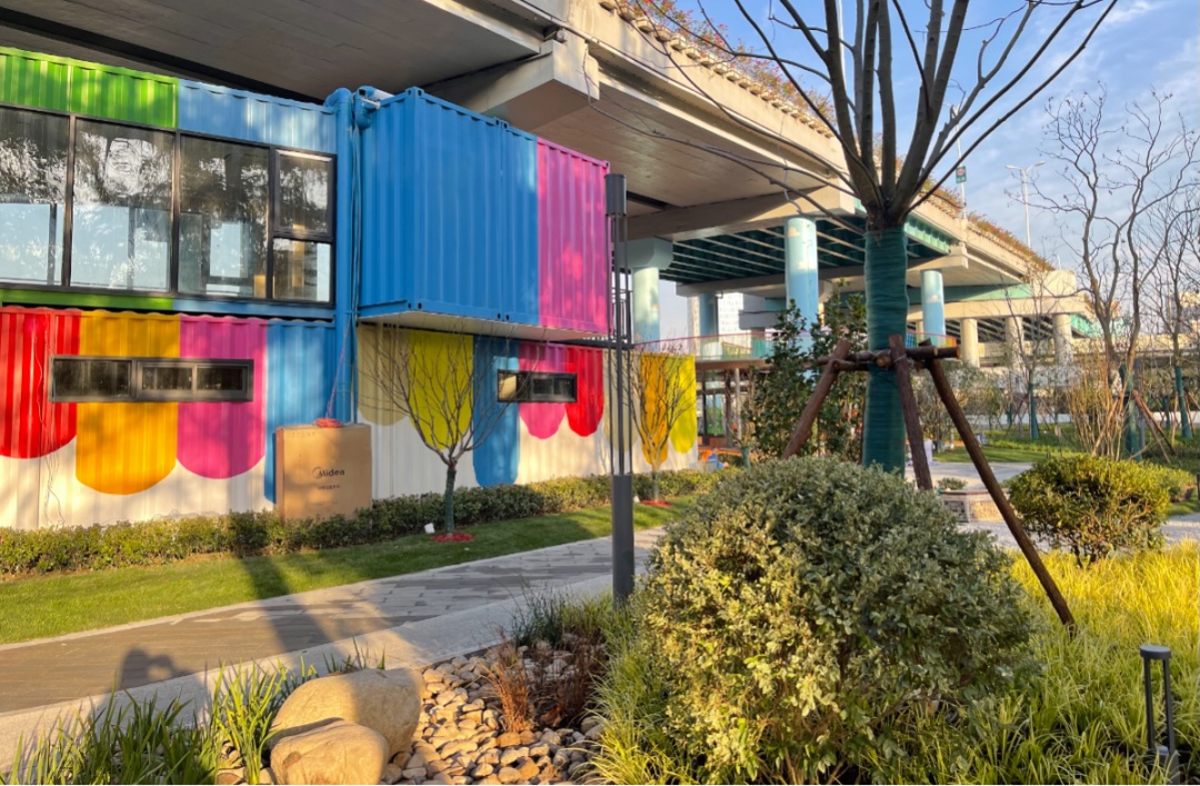 除了探趣乐园区、好奇乐区外,小游园内还设置有绿动乐园区和亲子驿站等特色活动区。绿动乐园区是场地内阳光较充足的区域,布置了多功能运动场所及休闲健身设施,可以进行少儿篮球、传统小游戏等,旨在为周边儿童及市民提供运动场所和娱乐设施。集装箱改造而成的亲子驿站布置有母婴室、无障碍卫生间等,今后还将嵌入售卖、寄存、社区服务等功能,更增强了人性关怀与舒适体验。