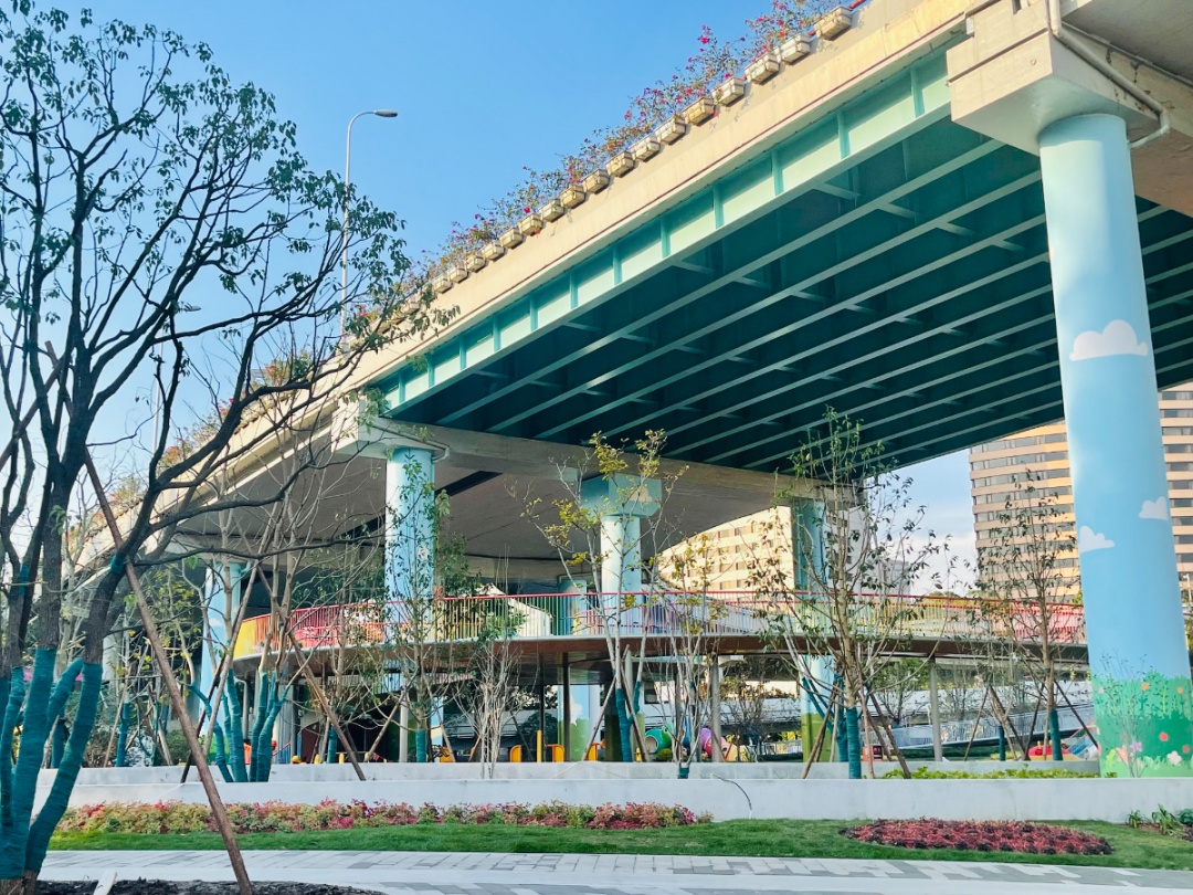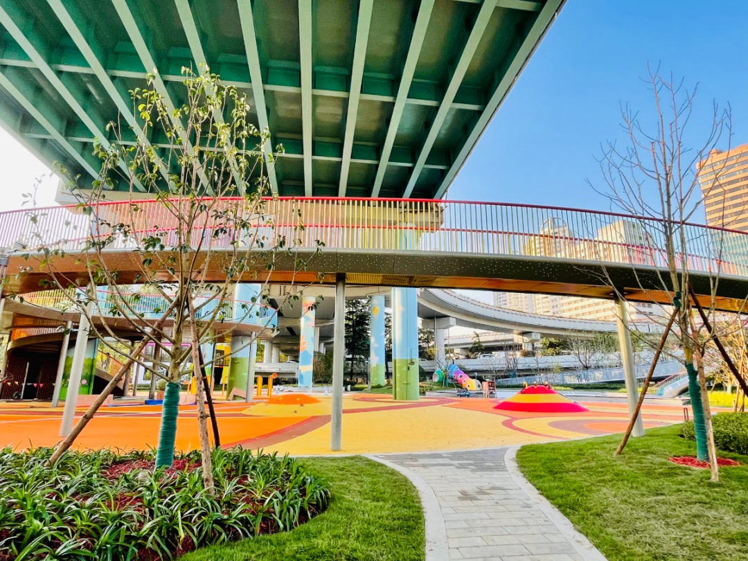内环漕溪北路立交桥下藏着一座“彩虹城”,这对于徐汇的市民来说早已不是秘密,甚至不少外区的市民周末也会特地驱车而来,在这里享受一下午的亲子时光。作为全市首座儿童友好型口袋公园,乐汇小游园为孩子们提供的不仅是可以肆意奔跑玩乐的斑斓场地,还有不少“小秘密”隐藏在其中让孩子们边学边玩,快乐成长。