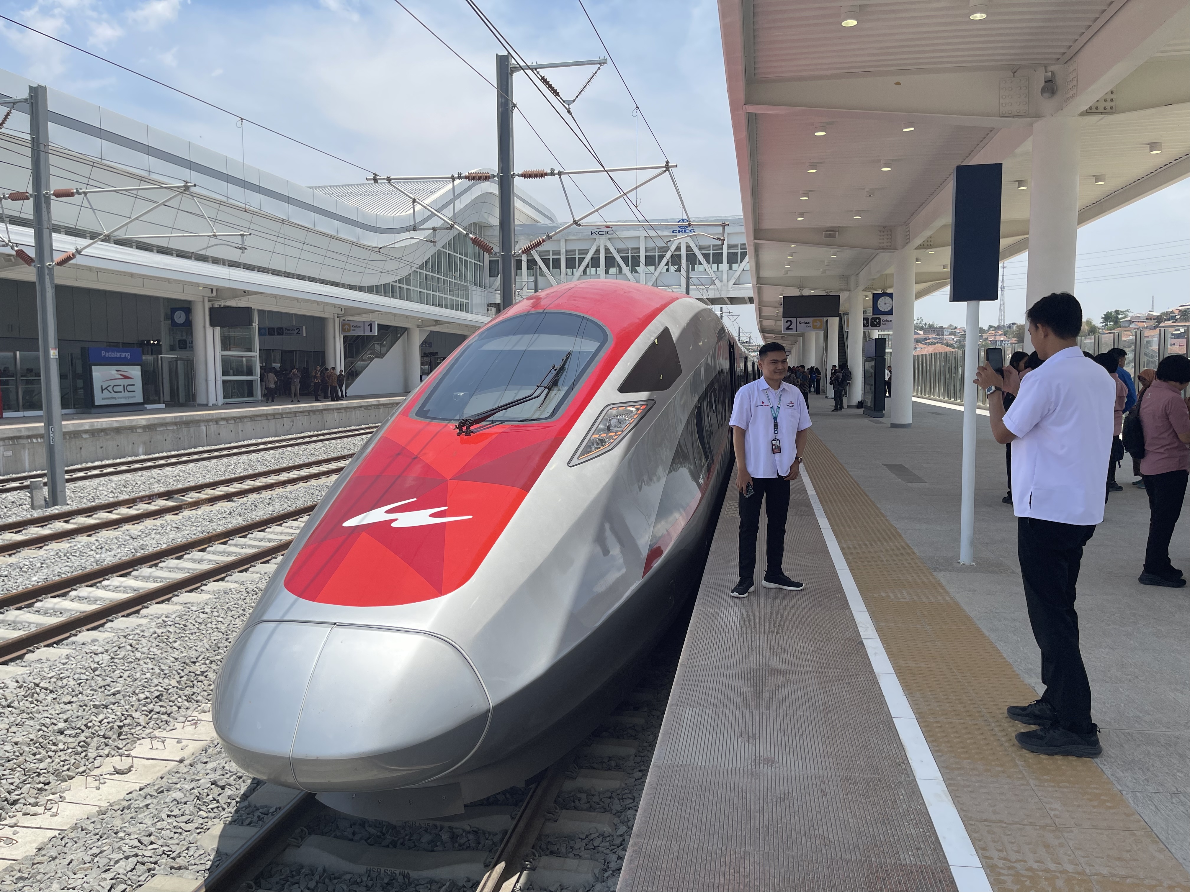 据悉,雅万高铁使用的列车,包括包括11列用于载客运营的高速动车组和1列用于承担综合检测任务的综合检测列车。2022年8月在中车四方股份公司下线,并开始通过海运运往印尼;2022年11月,在当地开展试验运行。2023年5月,雅万高铁开始联调联试。2023年6月,雅万高铁列车在联调联试中时速首次达到350公里,达到设计速度目标。2023年10月2日,雅万高铁列车正式启用。
