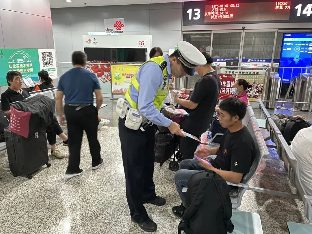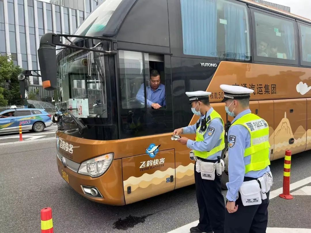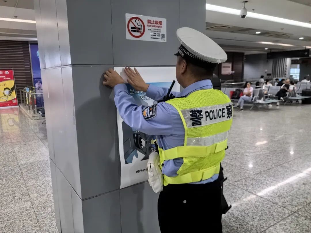 交警支队组织警力至虹桥枢纽周边道路、虹桥长途客运站等重点区域开展交通安全宣传教育,张贴宣传海报,发放宣传手册。对客运大巴乘员未佩戴安全带等交通违法进行登车检查。