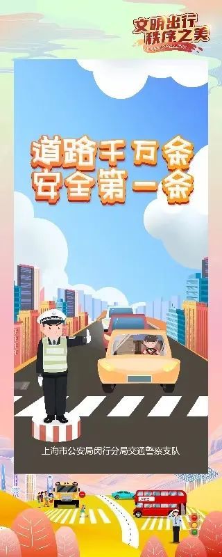 闵警提示 各位市民朋友们 长假期间出行游玩,请务必做到 不闯红灯不逆行,“一盔一带”不忘记 文明驾驶不暴躁,按序通行不抢行 守交通法规,保安全出行