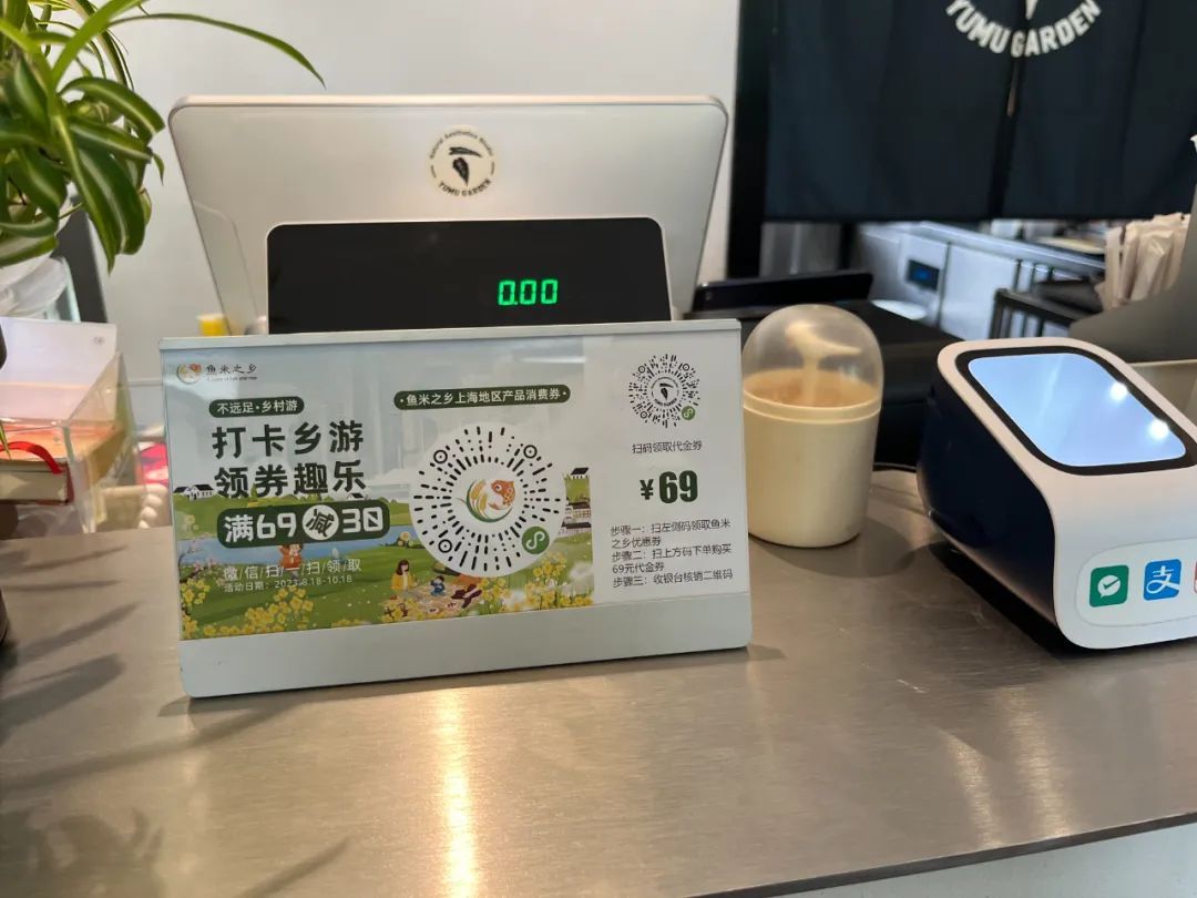 配合中秋、国庆氛围,鱼米之乡平台正在举办的主题为“畅游美丽乡村,感受醉美市郊”的“不远足,游乡村”2023上海夏秋季乡游活动,也可在吴房村店铺内打卡领取满69减30的线下大额“乡游”消费券,可参与的活动有亲子农场采摘、传统手工制作、乡野美食咖啡、户外房车露营、鱼塘垂钓、直升飞机体验等等。