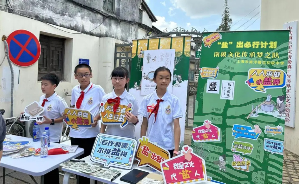 “人人来做小盐神”“我是文化代盐人”……国庆节期间,上海市南洋模范初级中学七(10)班几位文化小达人组成的“南模文化传承梦之队”,到新场古镇和徐家汇公园,为盐文化打call,为游客开展盐文化的公益宣讲和志愿者展示活动。