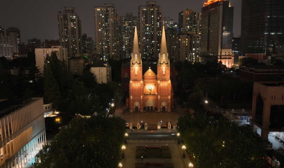 在漕溪北路沿线,海派历史保护建筑——徐家汇藏书楼、徐家汇天主教堂、上海老站、圣爱大厦等也亮起了节日的灯光。这些建筑以丰富的光色和动态变化来渲染节庆氛围,凸显了徐家汇源的历史人文底蕴。灯光将建筑的轮廓和细节展现得淋漓尽致,让人们感受到了历史的厚重和文化的魅力。