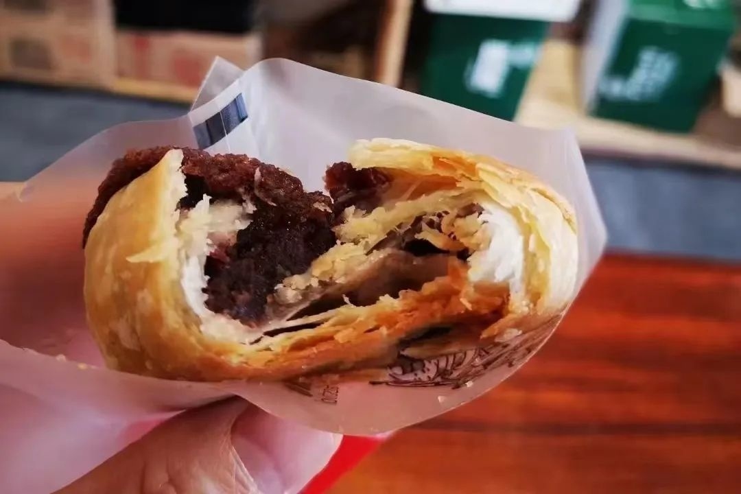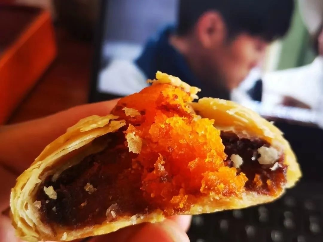 掰开一块“渔福酥”,尝上一口,酥脆的外皮混合着松软的内馅,让人齿颊留香,忍不住一口接一口,吃完还想再来一块。