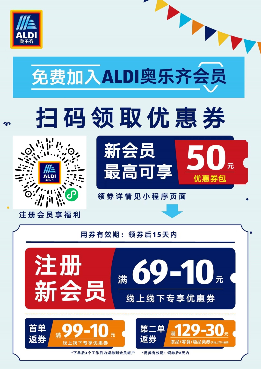 新店开业还有满赠活动,实付满99元送帆布包一个、实付满329元送50元礼品卡一张,数量有限,先到先得。这些优惠活动为消费者带来了更多的惊喜和实惠,也为ALDI奥乐齐徐汇龙华会店的开业增添了更多的喜庆氛围。