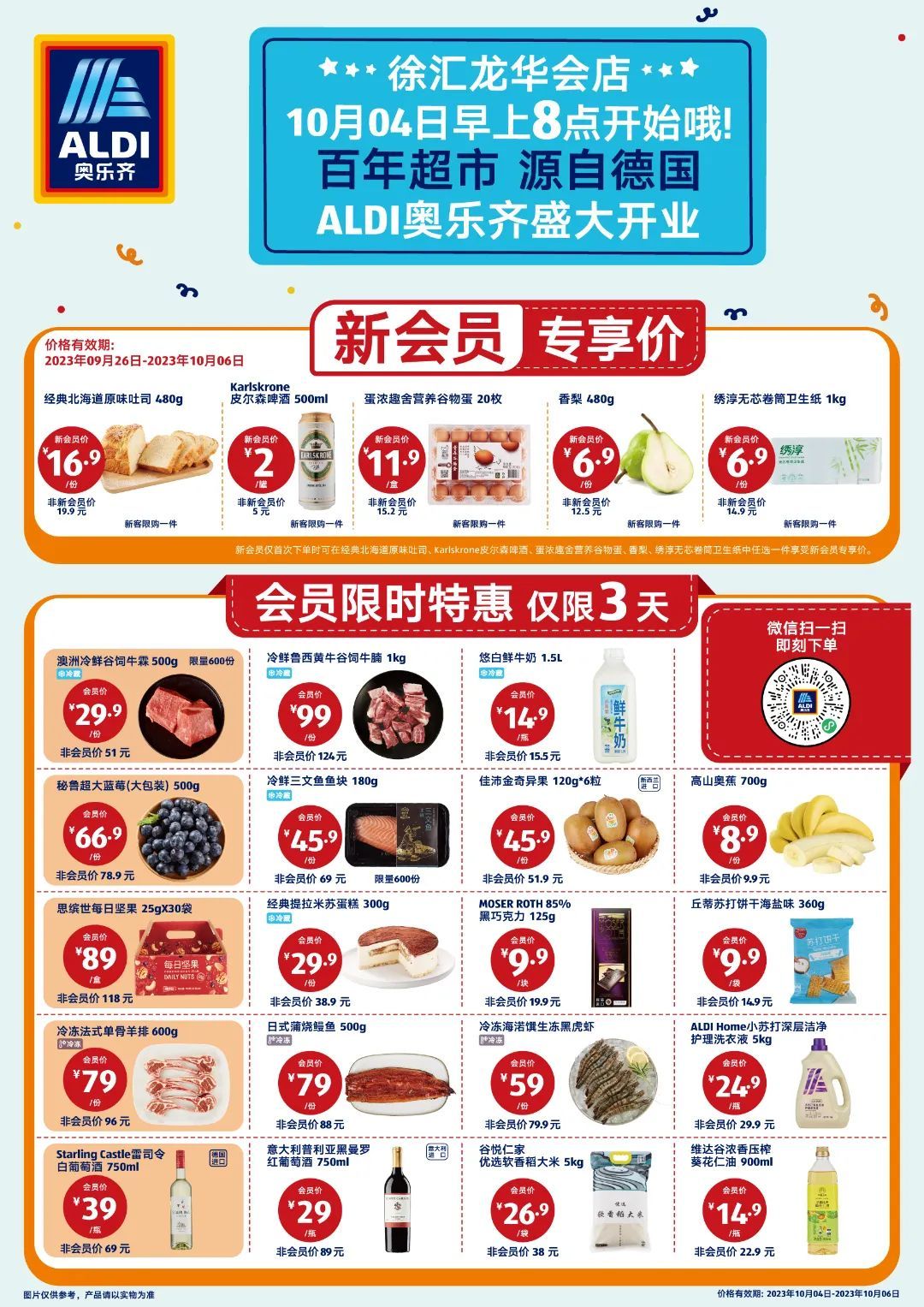 除了提供丰富多样的美食,ALDI奥乐齐徐汇龙华会店还在开业期间推出了一系列优惠活动。10月4日至10月6日期间,会员可以享受限时优惠促销活动,爆款商品超低折扣。前往线下门店仅需认准红价签,无需比价闭眼入,降至“冰点”的价格让消费者纵享惬意与实惠。
