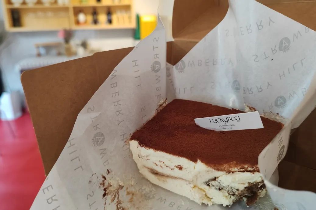 作为某点评网站上虹桥地区的提拉米苏榜第一,草莓山的提拉米苏受到许多消费者的喜爱。奶油丝滑、入口即化、清爽不腻。底部一层薄薄的巧克力蛋糕打底,表面再撒上一层厚厚的可可粉,与冰淇淋口感的奶油交融,浓郁的巧克力与咖啡酒味便溢了出来。