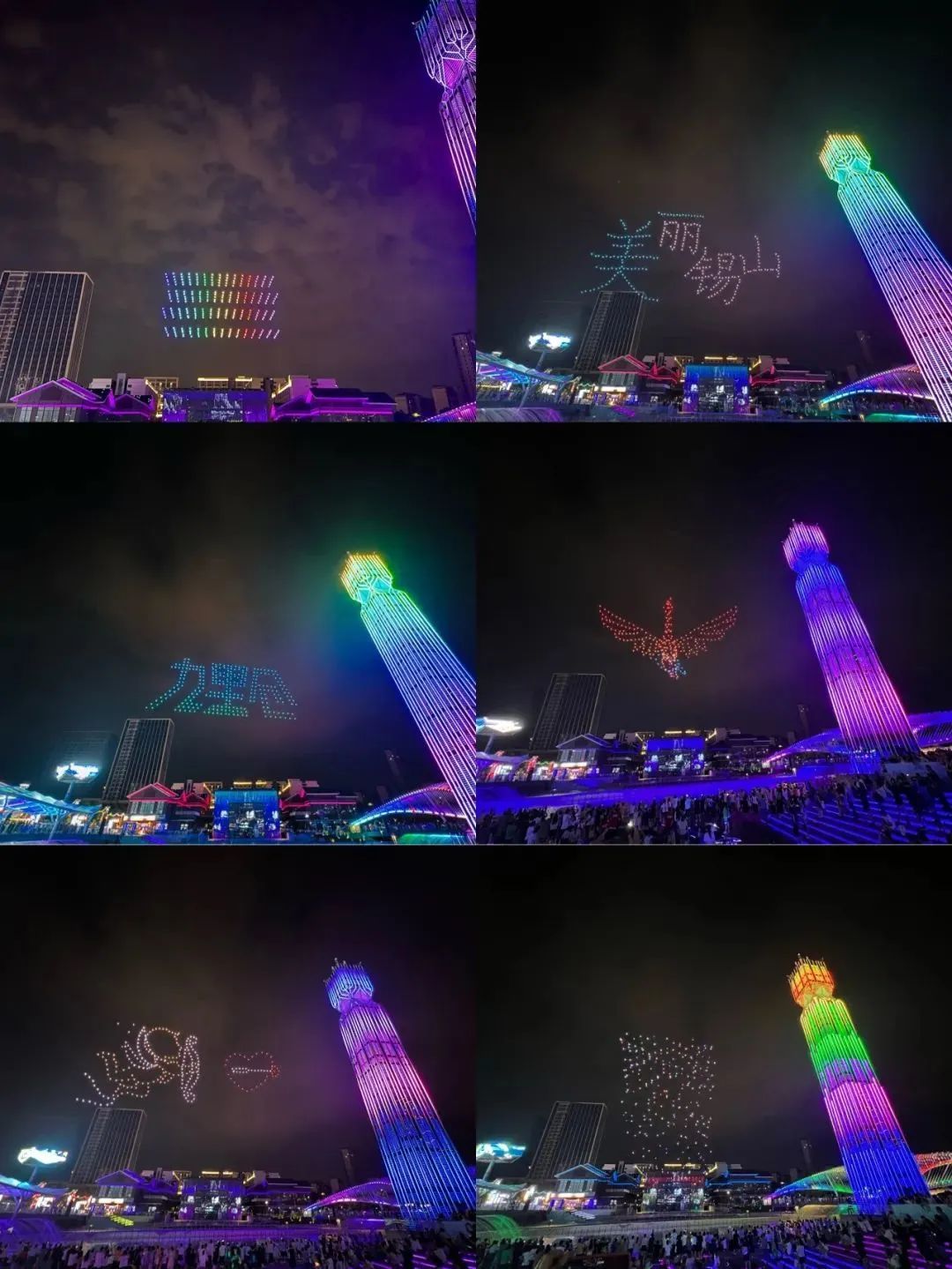 夜空中时而是“美丽锡山”的变色字幕
