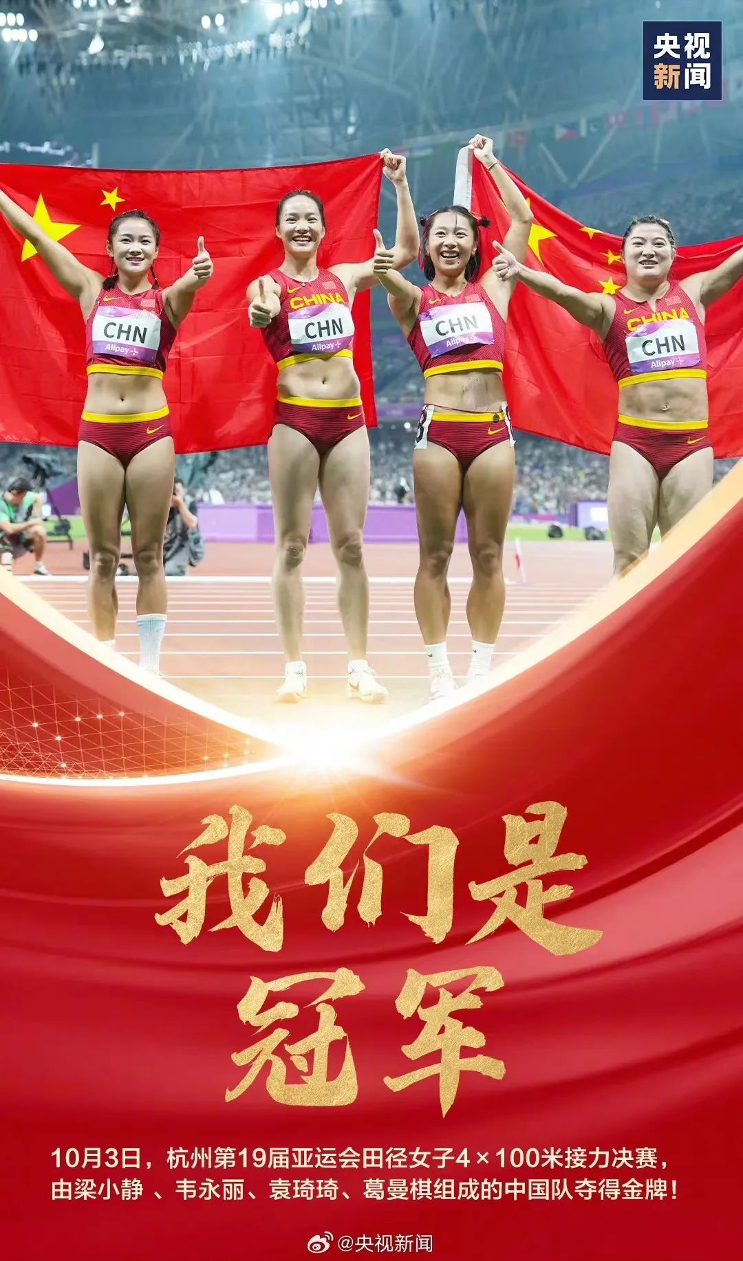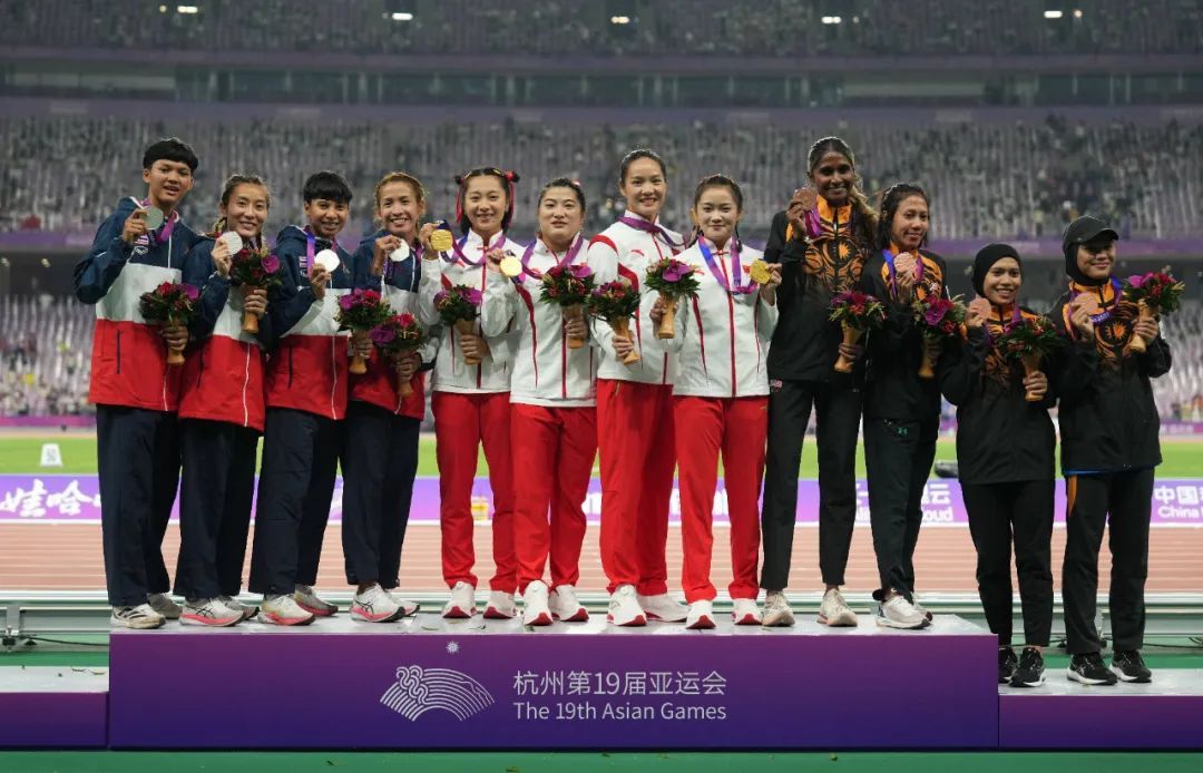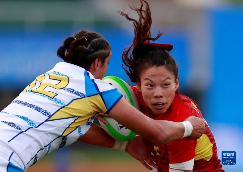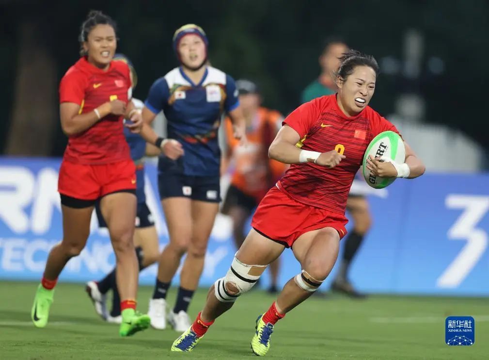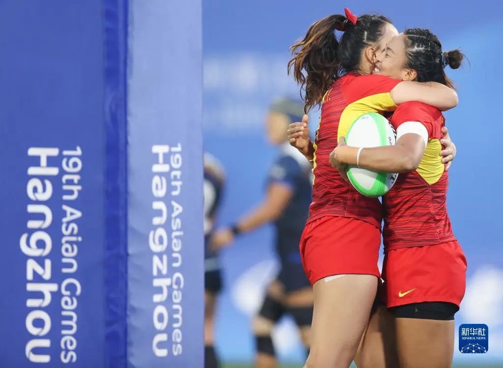 9月26日,在杭州亚运会七人制橄榄球女子组决赛中,上体学子谷瑶瑶、刘潇倩、吴娟和队友组成的中国队获得冠军。