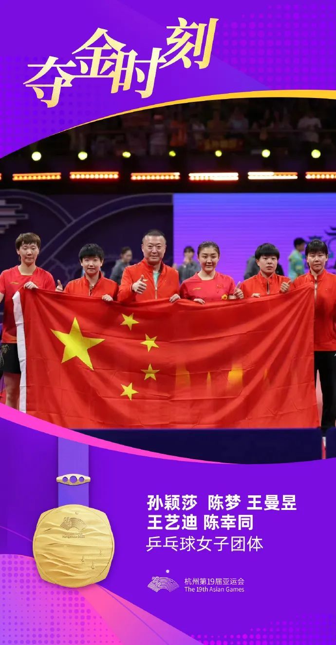 9月26日,在杭州亚运会乒乓球女子团体决赛中,上体学子陈幸同和队友孙颖莎、陈梦、王曼昱、王艺迪组成的中国队夺得冠军,实现国乒女团亚运5连冠。