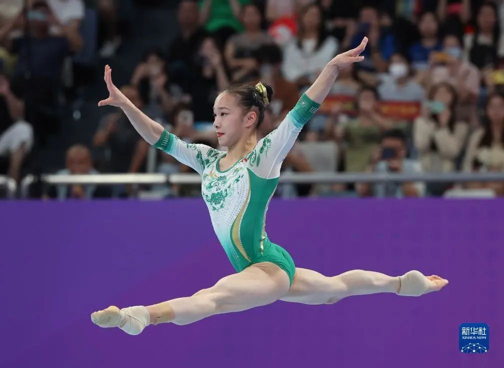 9月29日,在杭州亚运会竞技体操项目女子自由体操决赛中,上体学子章瑾以13.100分获得冠军。