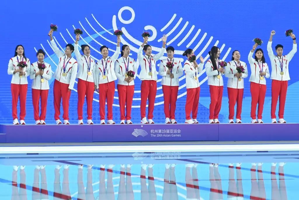 10月1日,在杭州亚运会水球项目女子循环赛中,上体学子严思雅、王诗蕰和队友组成的中国队获得冠军。