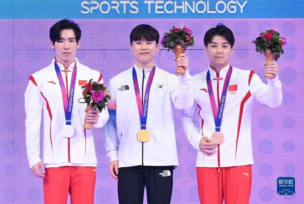 9月28日,在杭州亚运会竞技体操项目男子自由体操决赛中,上体学子林超攀获得季军。