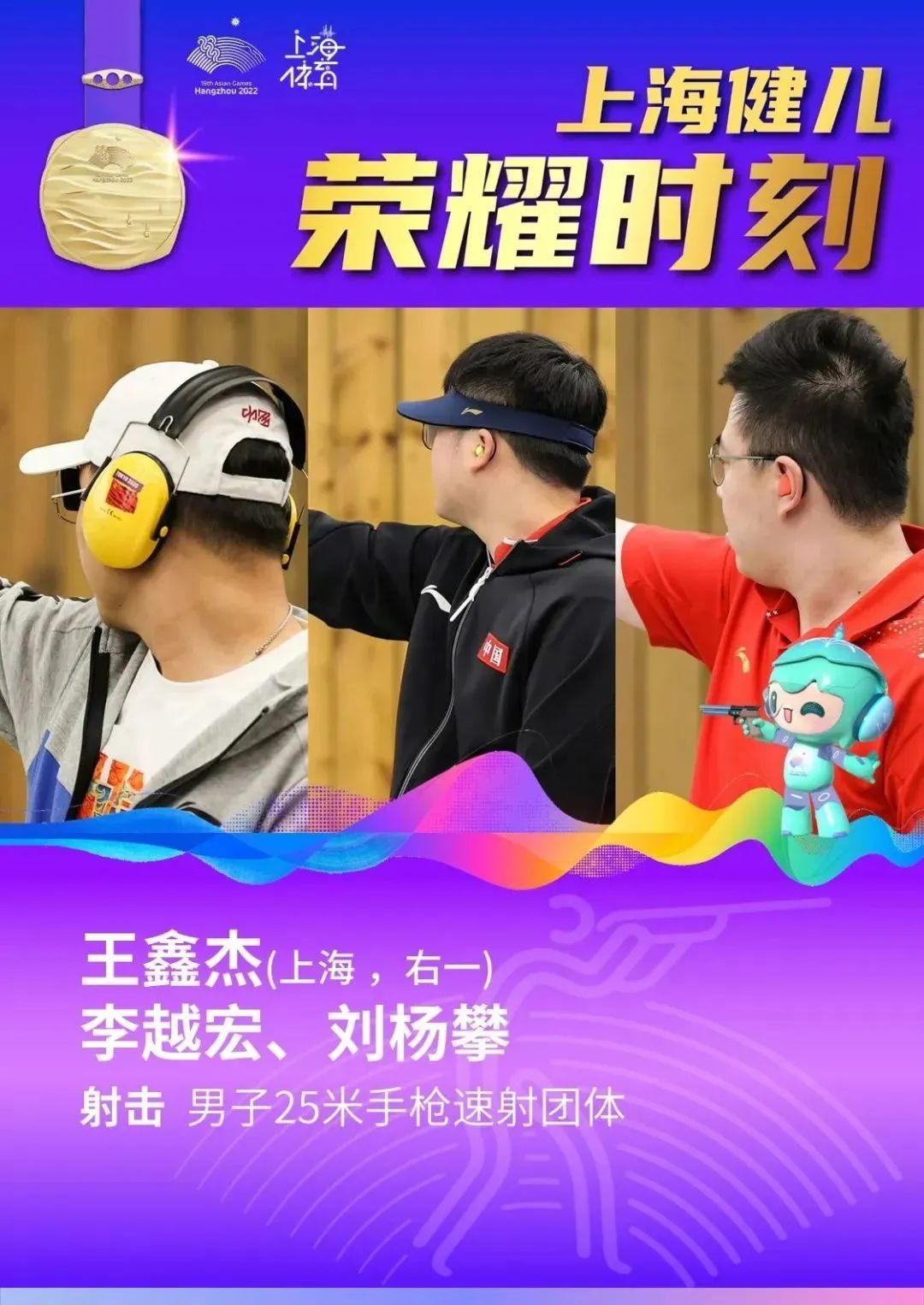 9月25日,在杭州亚运会男子25米手枪速射团体赛中,上体学子王鑫杰和队友李越宏、刘杨攀组成的中国队以1765环的成绩创造了新的世界纪录并夺冠。