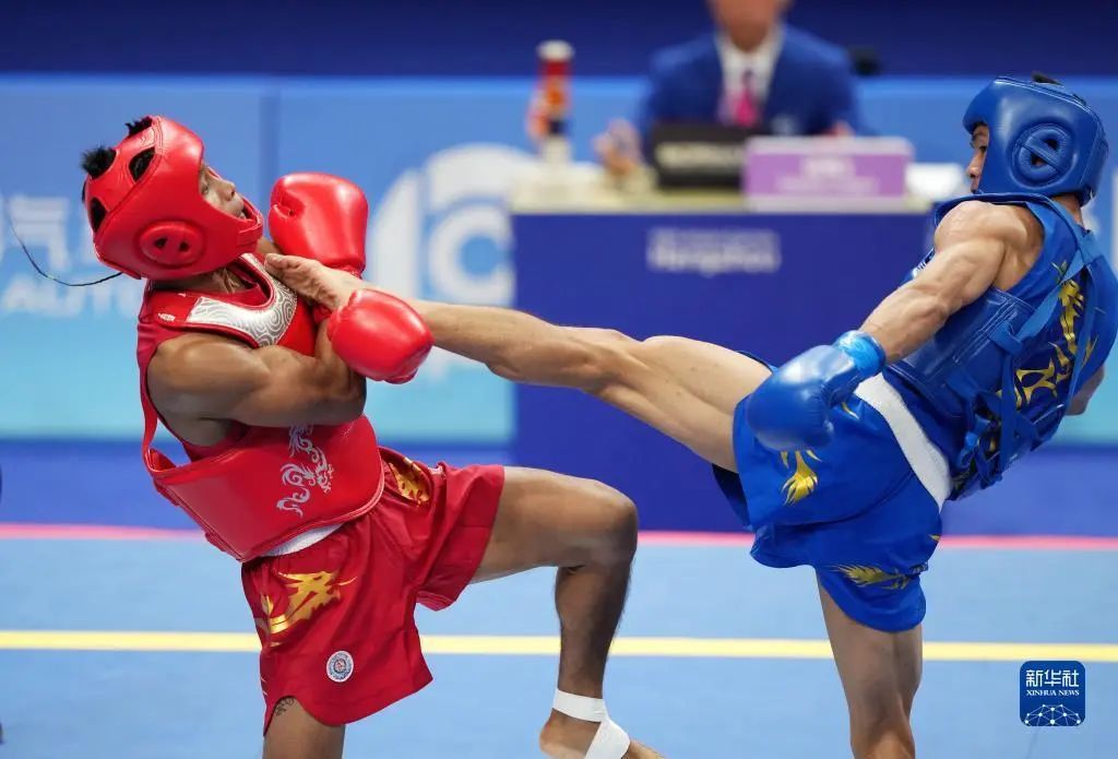 9月28日,在杭州亚运会武术项目散打男子56公斤级决赛中,上体教师江海东夺得冠军。