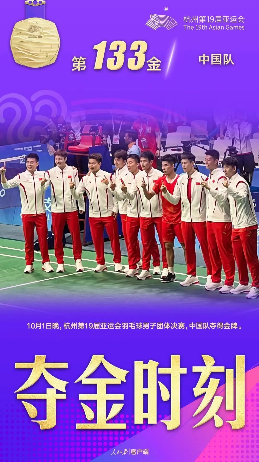 羽毛球男子团体金牌