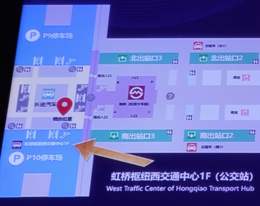 高铁出站后,需要乘坐地面公交的旅客,需前往虹桥枢纽西交通中心1F(公交站)乘车。西交通中心位于地面一层。