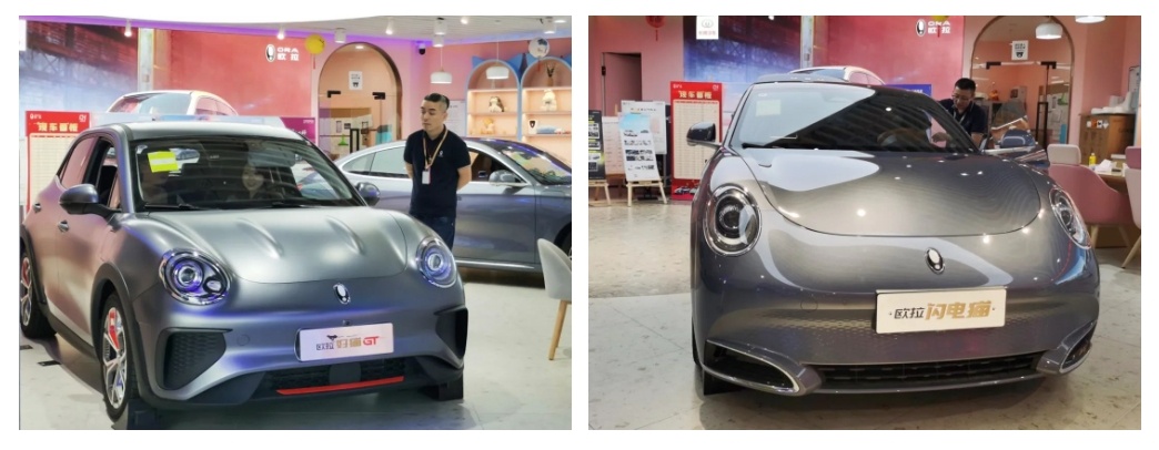 欧拉成立于2018年,独特的品牌定位使其积累了大批粉丝。“宁宁”在欧拉龙之梦店看到,“好猫”“好猫GT”“闪电猫”等三台主推车型都比较小巧,除颜值高、可个性化定制等特性外,还具有智能驾乘、灵敏操控等科技亮点。