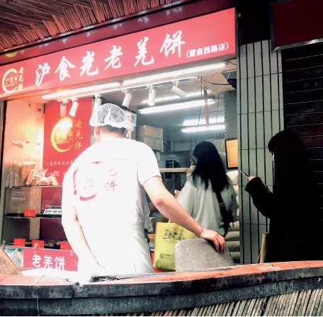 近50米长的蒙西菜场沿街外立面,一字排开好几家饮食小店。在一家羌饼店的早餐时段,顾客络绎不绝,几乎3分钟就能卖掉1张8斤分量的羌饼。15平方米的店铺有2只专用的炉子,师傅摊饼、洒水、浇油、翻面、撒葱花,一刻不停。这家开业2年多的小店,每天从早上6点至下午6点,可以卖掉200只羌饼。12元一斤的羌饼,由食客自报所需金额或斤两。早上8点半左右,仍有不少人在排队,多数居民都买3元至5元的量,花10元足够2人吃了,也有一开口就要1斤、2斤的。