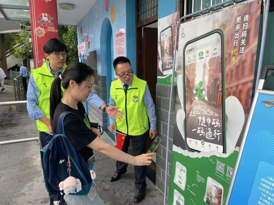 “请问,我怎么才能扫码支付车费,这个随申行怎么用?”近日,一位来自广州的游客向82路陆家嘴站内的青蜂志愿者咨询。两位志愿者耐心地将整个注册流程告知游客,游客直呼太方便了——在“随申行”官方小程序内,购买随申行联程日票,在手动启用“联程日票”后的24小时内,在上海公共交通运营时间段不限次数乘坐上海公交、地铁和黄浦江轮渡。
