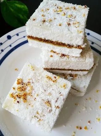 咬一口绵香酥软的洁白糕点,米香清爽,桂香缠绵,入口化渣,清香四溢,经久不散。