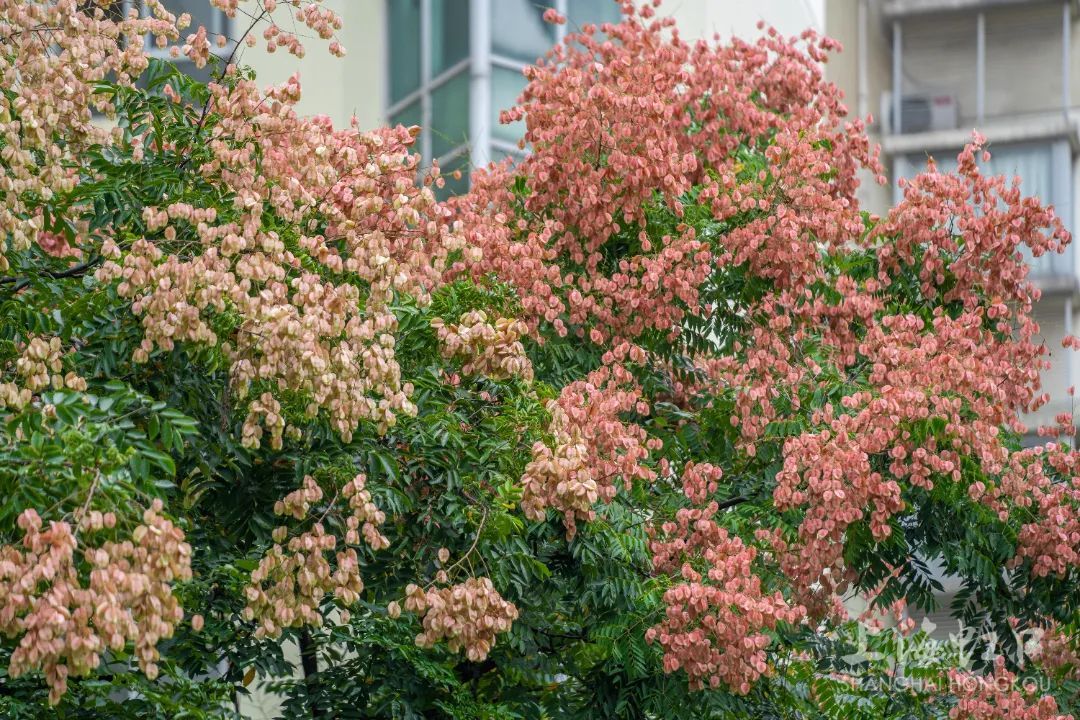 栾树被广泛用于城市道路绿化,虹口大街小巷的栾树,也是满树繁花硕果。