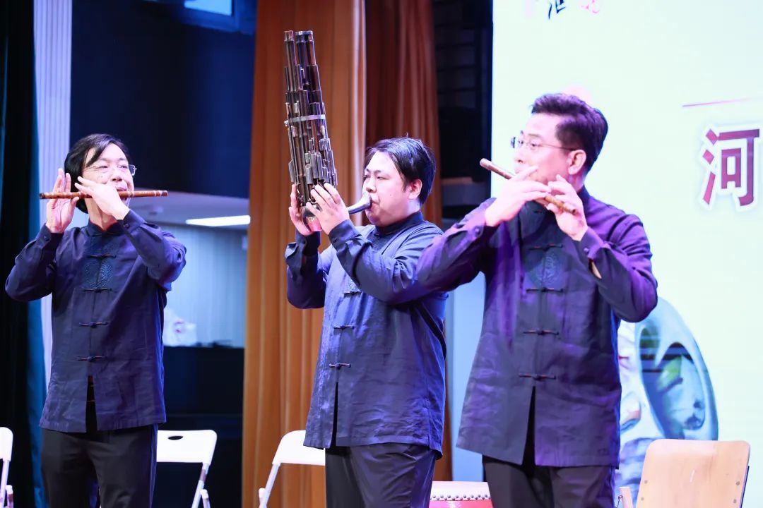 此外,演出还带来了具有浓郁的冀东风格唢呐二重奏曲《胜利秧歌》,以及竹笛二重奏曲《顶嘴》。《顶嘴》取材于河北冀南吹歌音乐,采用两支音调相同的梆笛演奏,运用了历、滑、顿、吐等技巧艺术,再现了你说我顶、你争我夺的场景,为观众带来极具感染力的音乐体验。最后,经典吹歌名曲《打枣》以唢呐、咔戏、口弦三种不同的演奏形式呈现,再现北方金秋枣收的场景,让观众感受到丰收的喜悦。